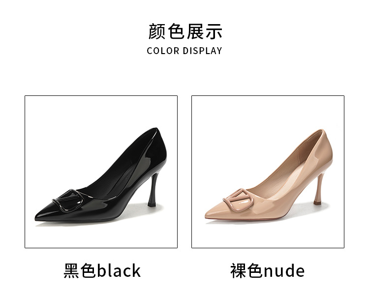 누드색 하이힐 여성용 2025 신상 V자형 버클 뾰족코 얇은 굽 편한 직장용 구두 다양한 사이즈스토어 가기