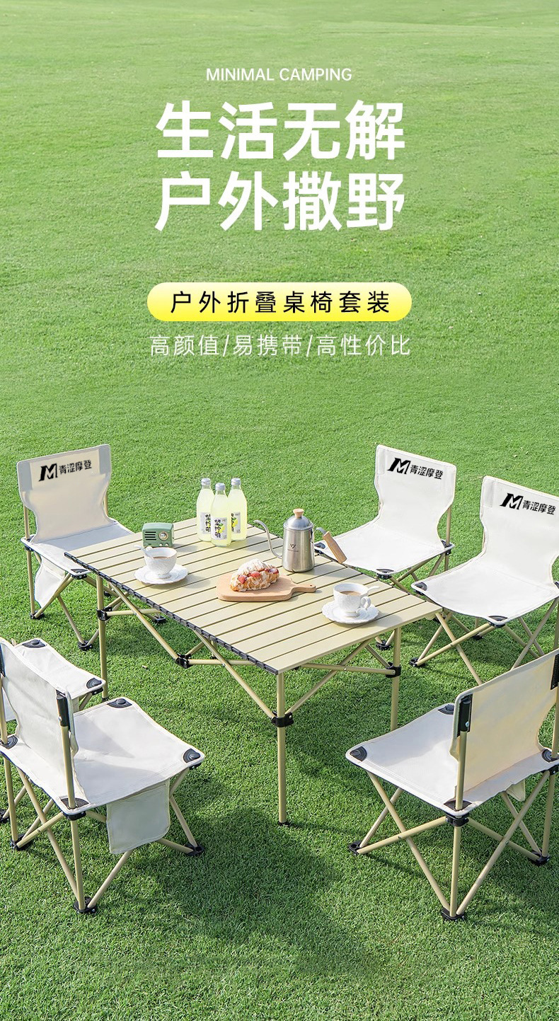 【청순하고 모던한】야외 접이식 테이블과 의자, 에그롤 테이블, 휴대용 피크닉, 캠핑, 바베큐, 노점 테이블
