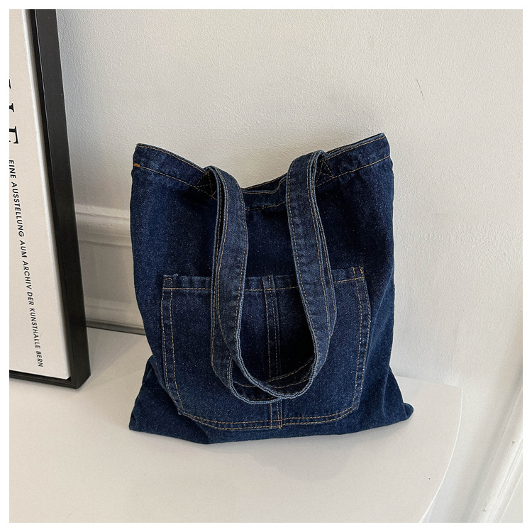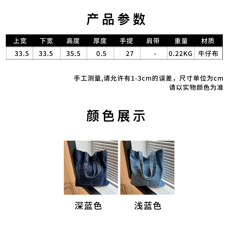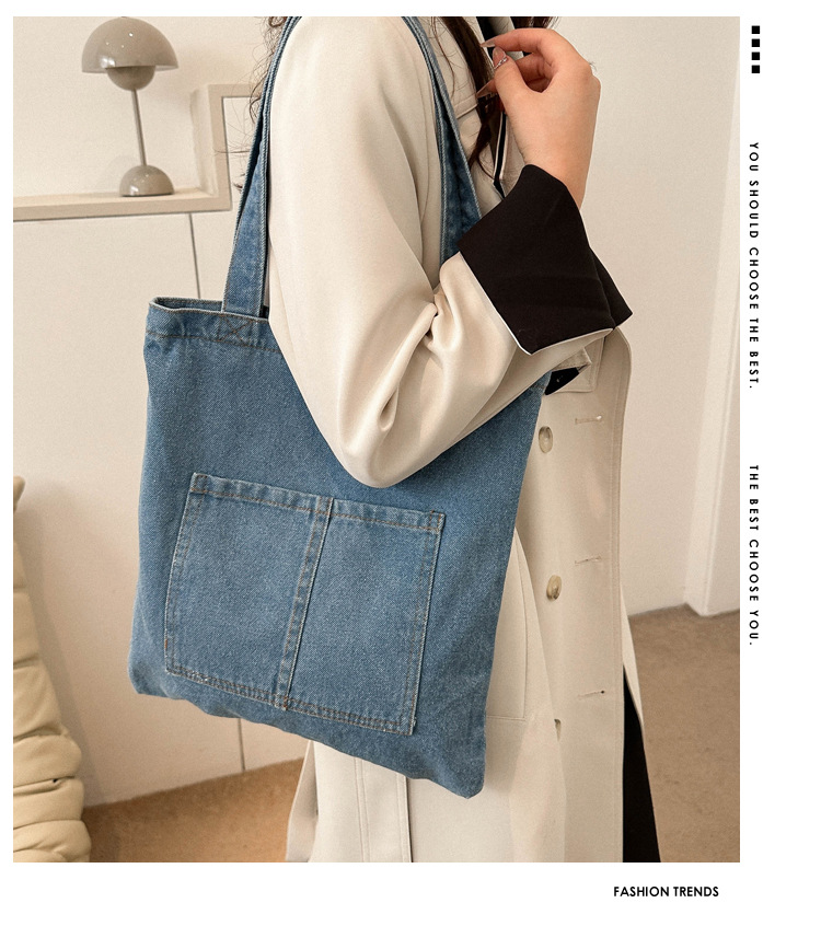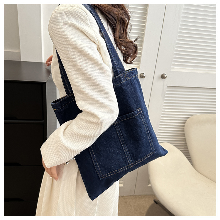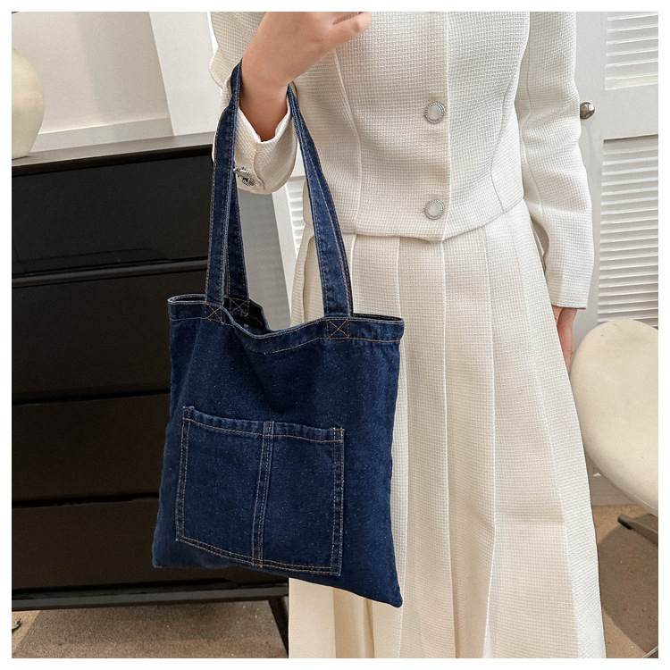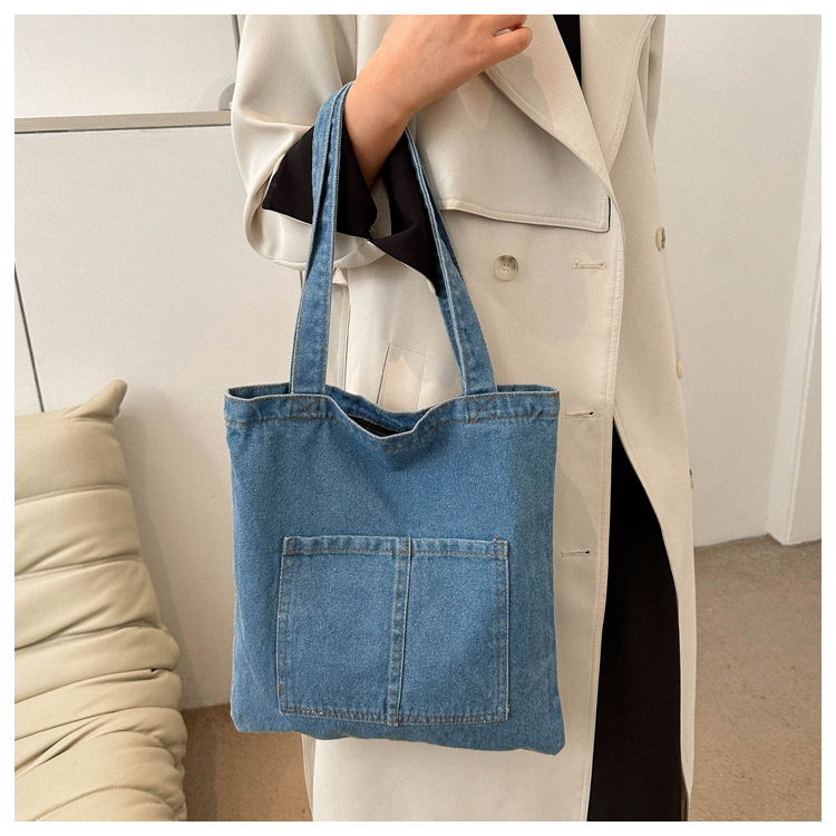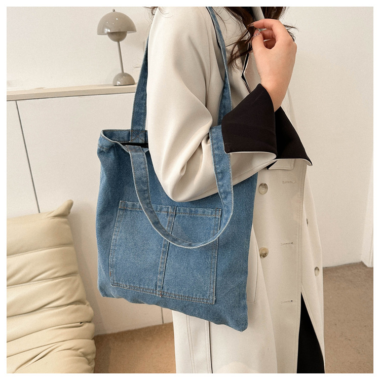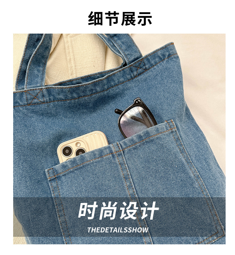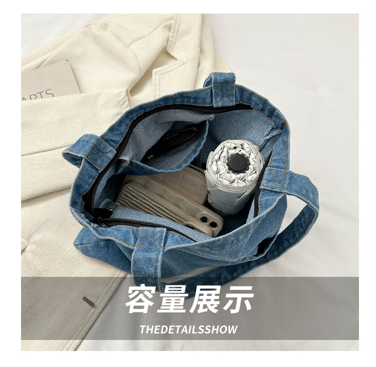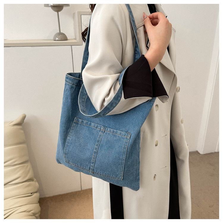 데님 대용량 토트 백 여성 패션 올매치 인 어깨 가방 간단한 캐주얼 통근 언더암 가방 도매스토어 가기