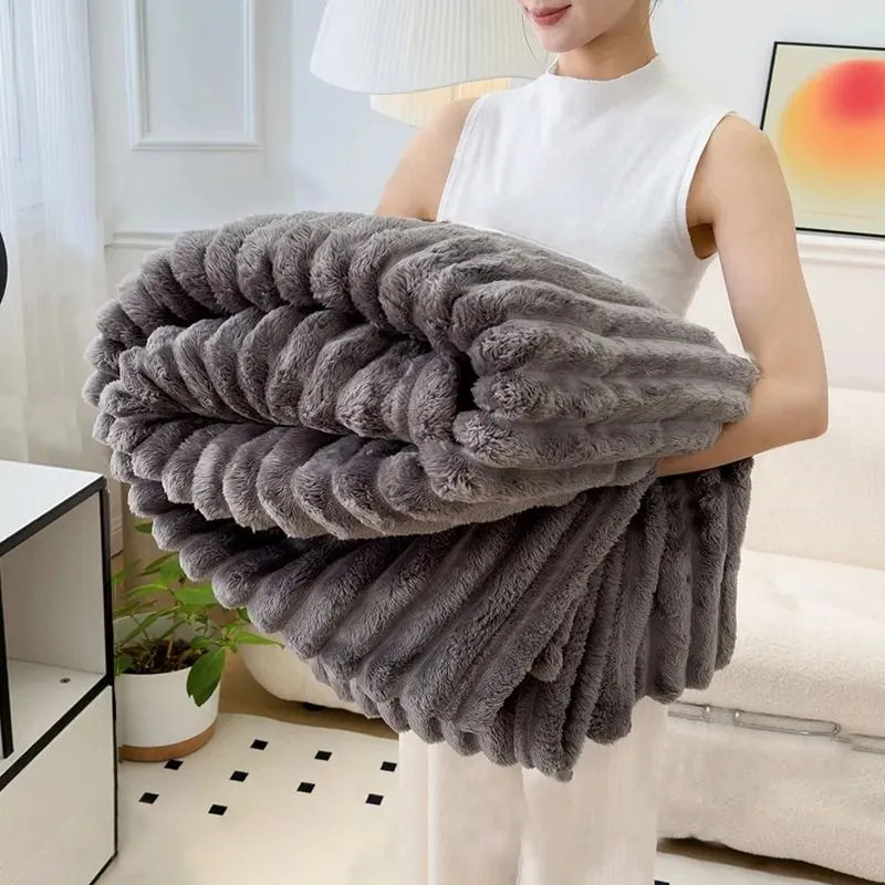 스트라이프 담요 4cm 와이드 스트라이프 담요 사무실 낮잠 담요 두꺼운 점심시간 담요 겨울 따뜻한 소파 담요