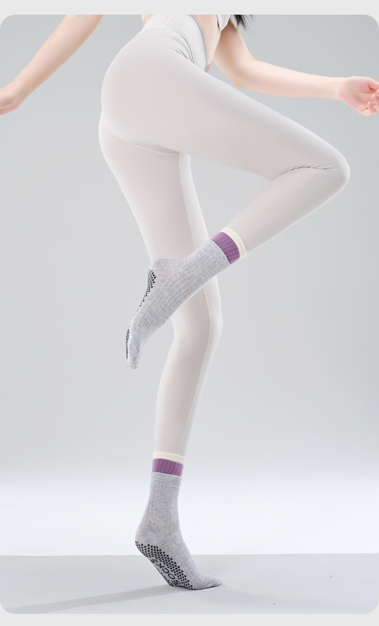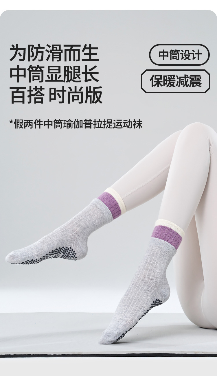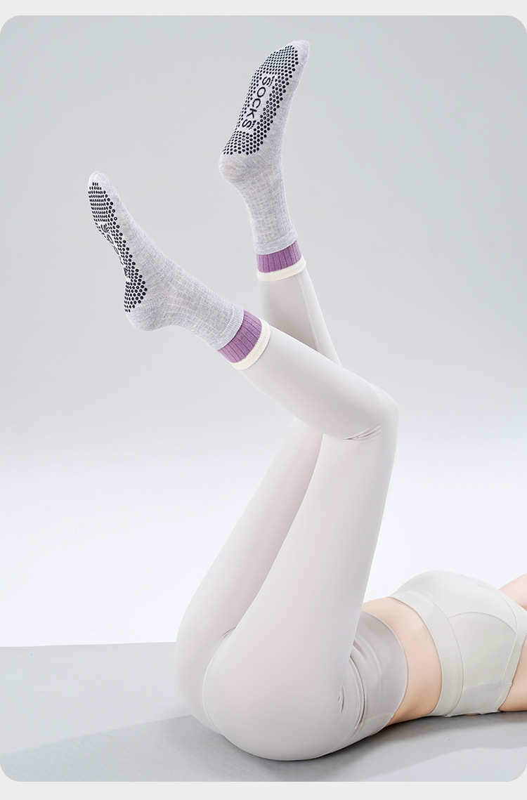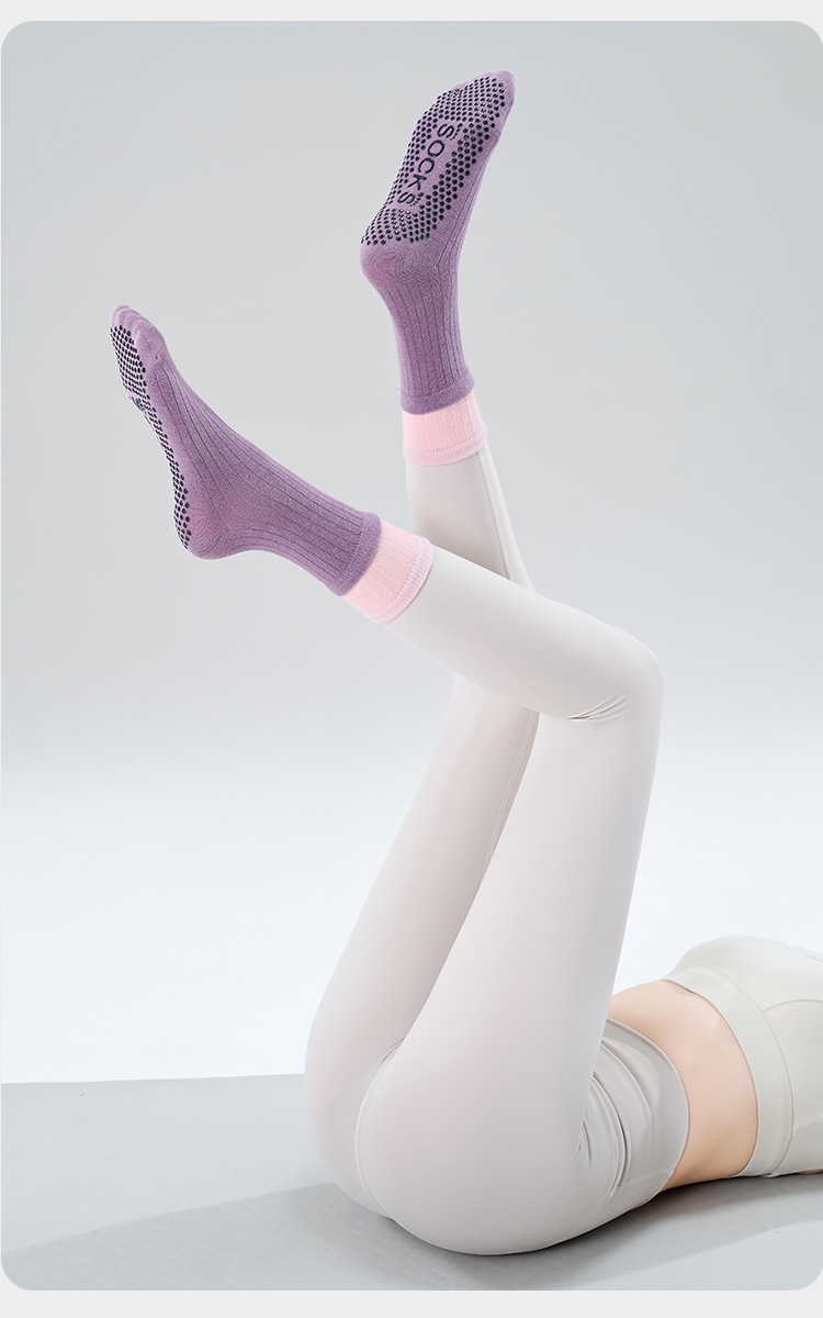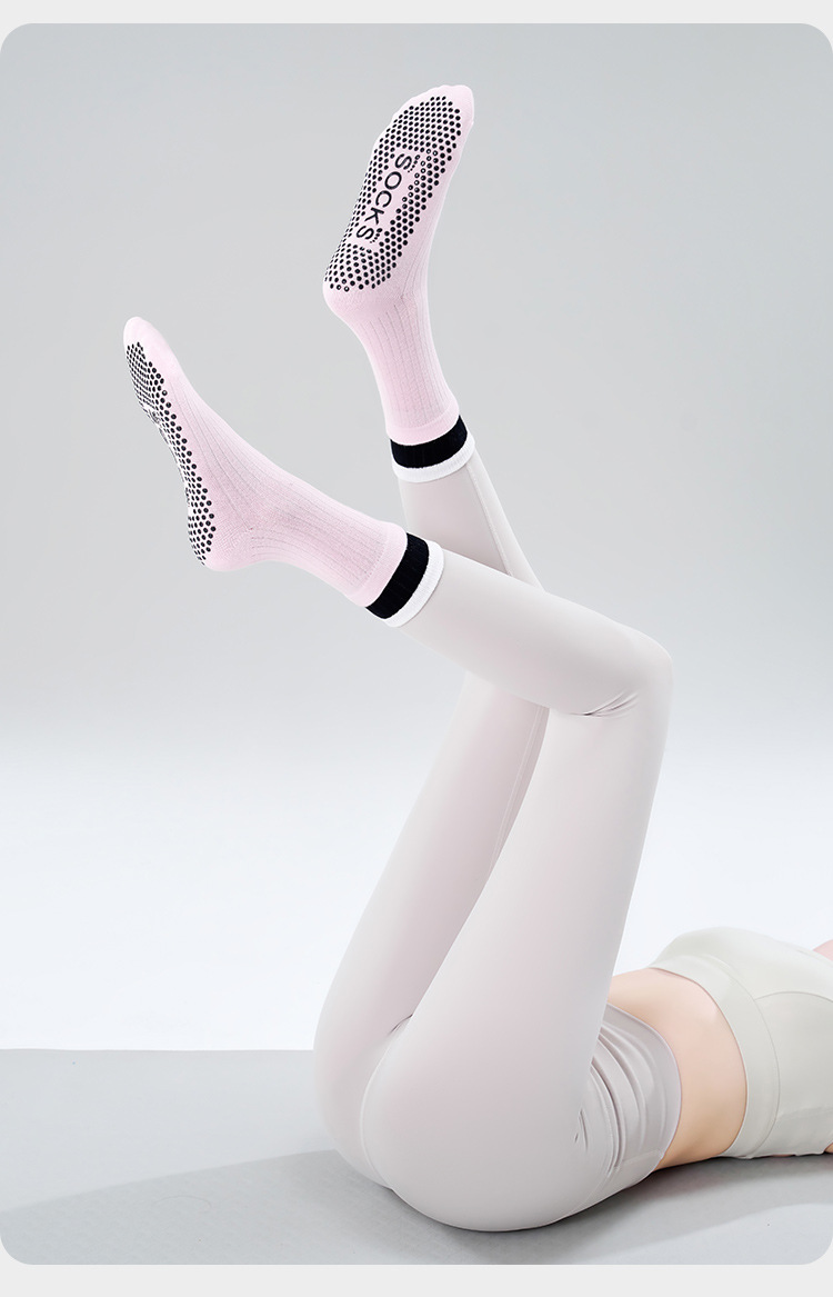 여성용 이중 레이어 중간 길이의 새로운 요가 양말, 미끄럼 방지 필라테스 전용 양말, 전문 스포츠 및 피트니스용 순면 봄용 양말