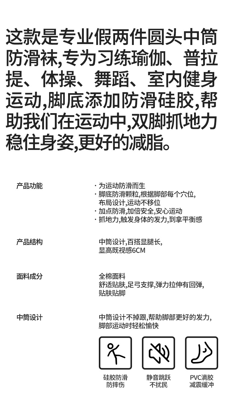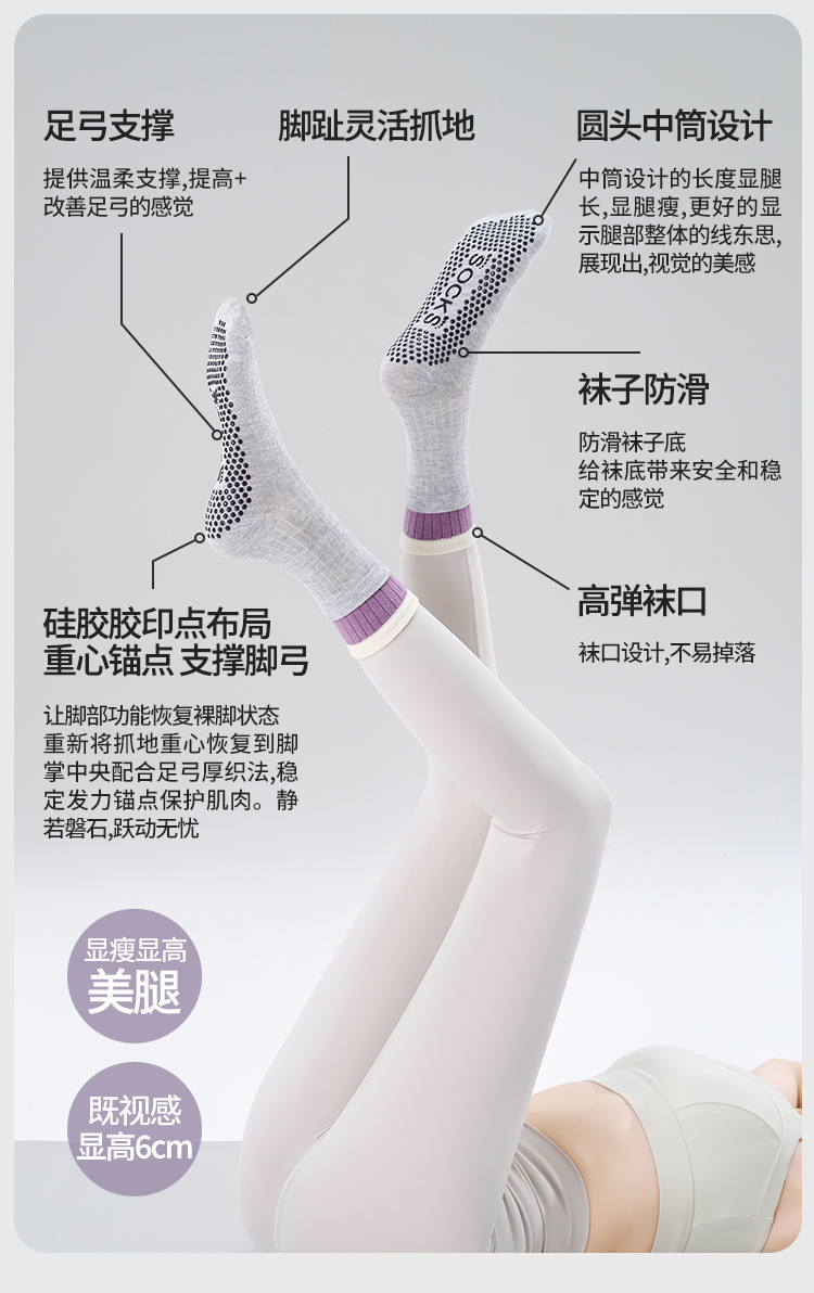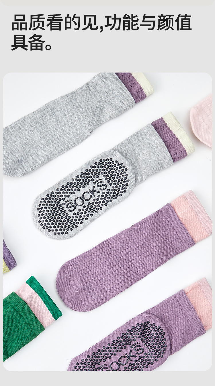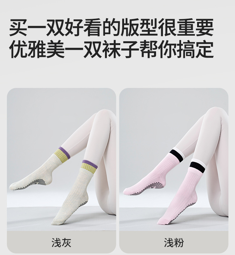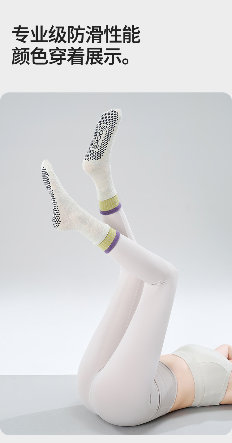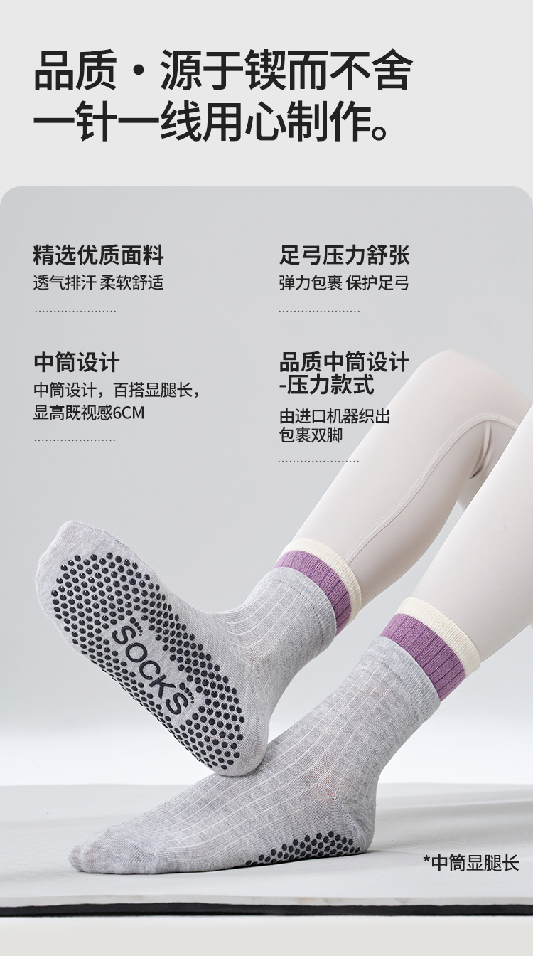여성용 이중 레이어 중간 길이의 새로운 요가 양말, 미끄럼 방지 필라테스 전용 양말, 전문 스포츠 및 피트니스용 순면 봄용 양말스토어 가기