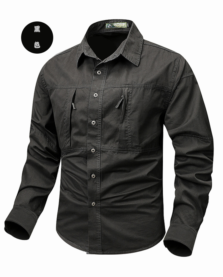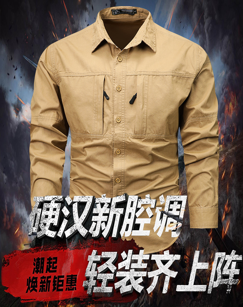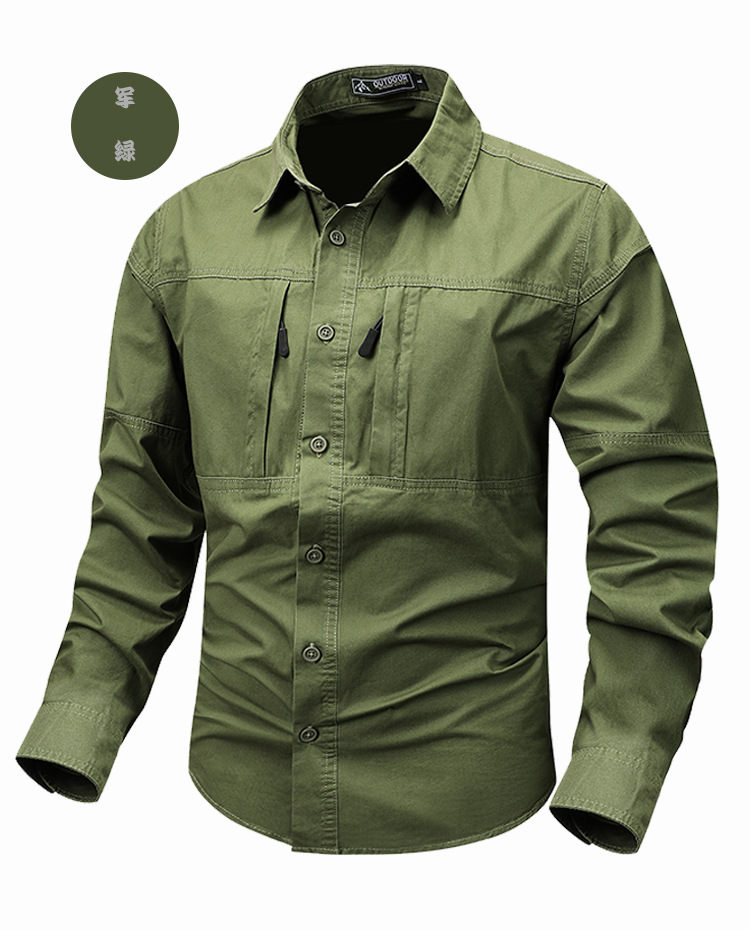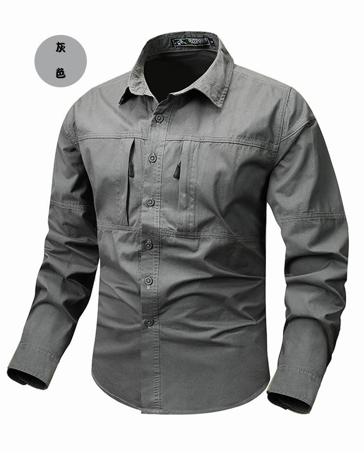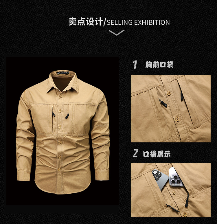남성용 긴팔 셔츠 2026 봄/가을 포켓 디자인 신상품 다림질 필요 없는 워크웨어 일본 스타일 탑 라펠 캐주얼 셔츠 트렌디