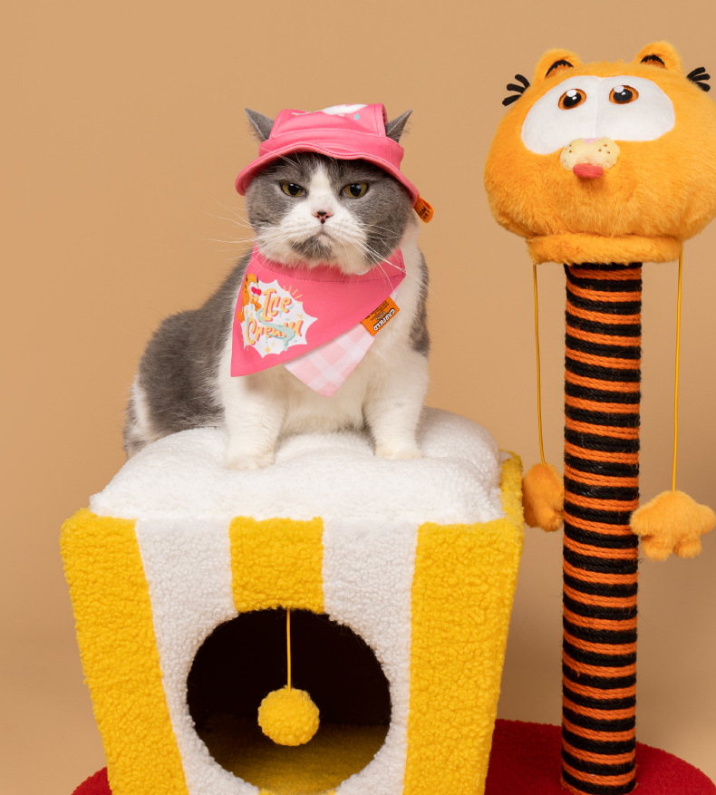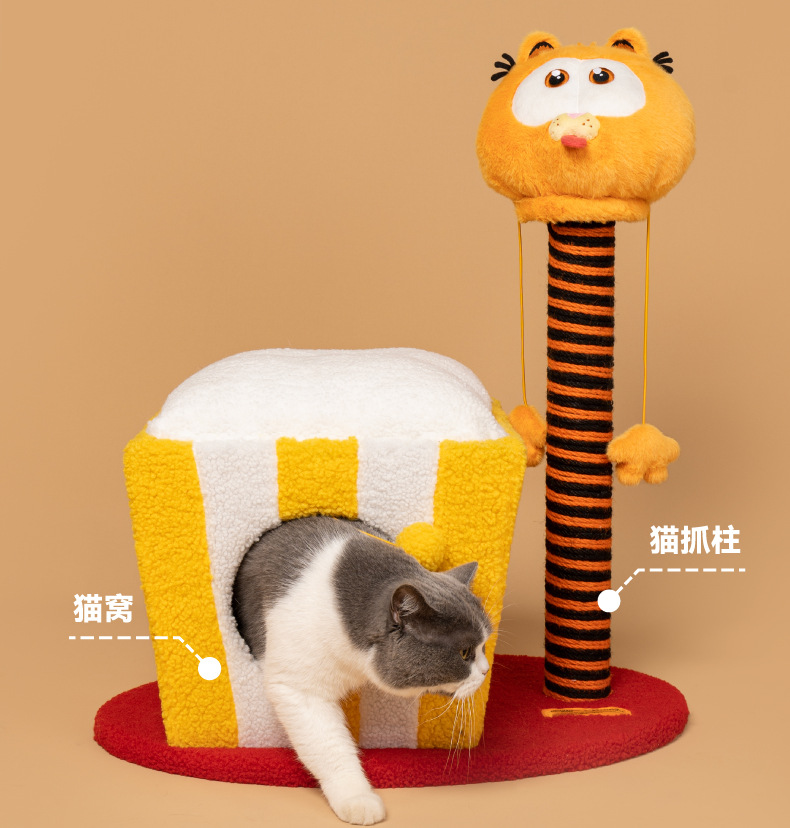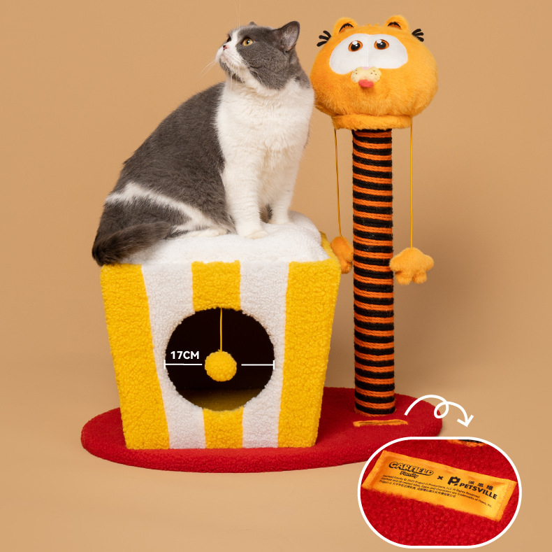 파이 사고 및 가필드의 회전 고양이 등반 프레임 고양이 잡아 칼럼 둥지 통합 장난감 폐쇄 따뜻한 대피소 사계절
