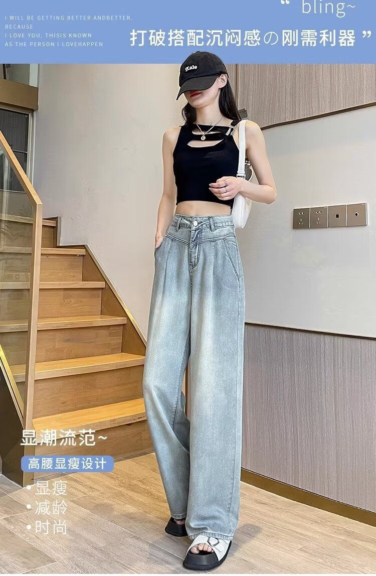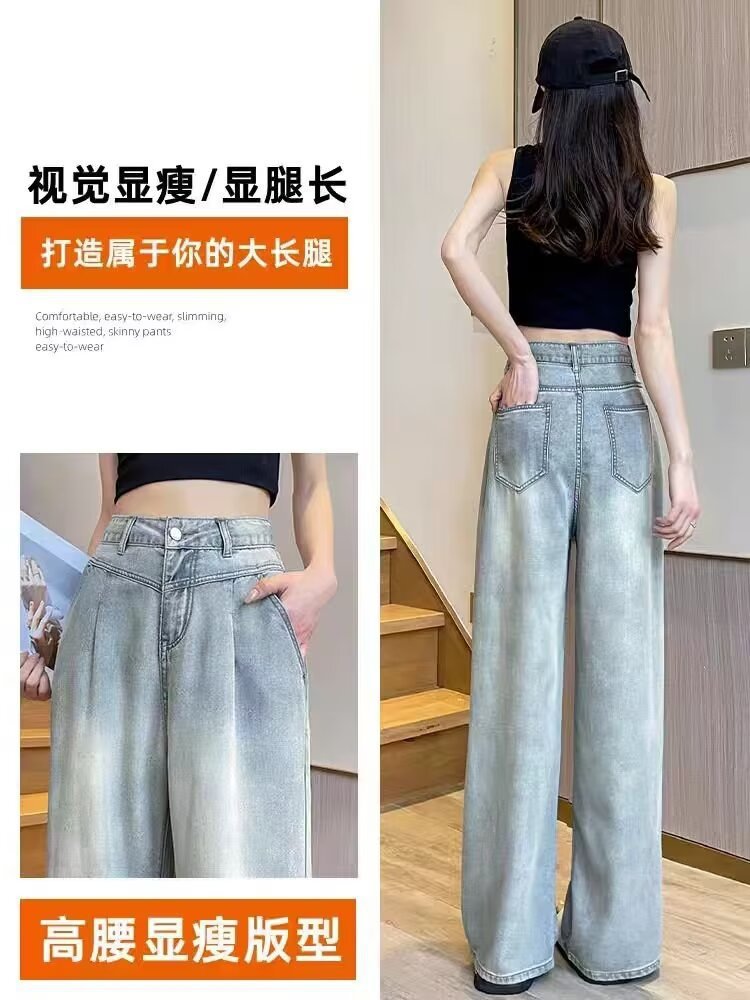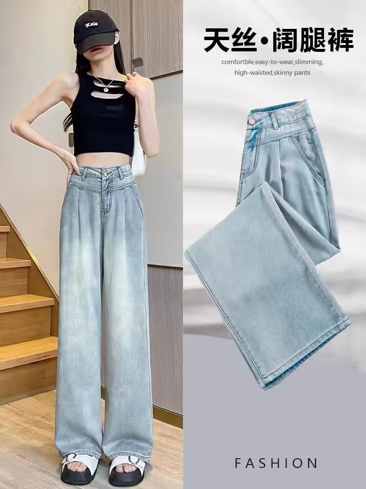 2025 새로운 텐셀 쿨 슬림 청바지 여성 스트레이트 레그 루즈 팬츠 작은 사람들을위한 새로운 하이 웨이스트 슬리밍 와이드 레그스토어 가기