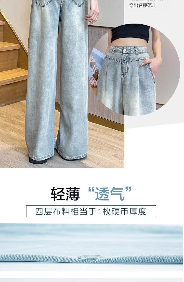 2025 새로운 텐셀 쿨 슬림 청바지 여성 스트레이트 레그 루즈 팬츠 작은 사람들을위한 새로운 하이 웨이스트 슬리밍 와이드 레그