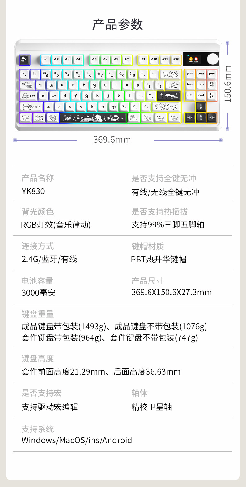 • YK830 빨간색 축-흑백 고양이 키캡