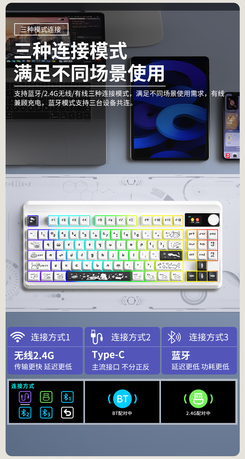 87pro 맞춤형 기계식 키보드 3모드 무선 블루투스 고급스러운 디자인 e스포츠 게임 키트 RGB 키캡스토어 가기