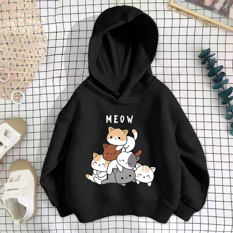 • 검은색 세 마리 고양이 스웨트셔츠 얇은 스타일