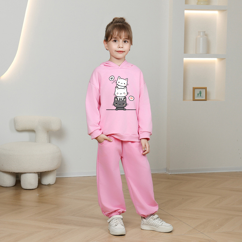 • 핑크 세 마리 고양이 스웨트셔츠 얇은 스타일