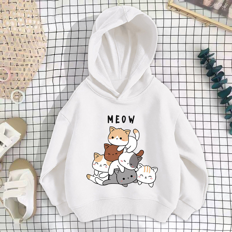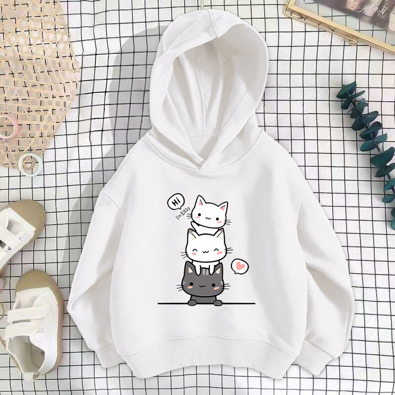 • 흰색 세 마리 고양이 스웨트셔츠 얇은 스타일