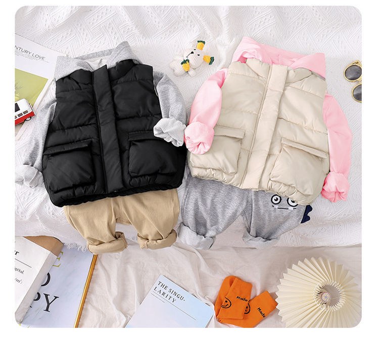 가을과 겨울 새로운 어린이 조끼 소년 소녀 아기 두꺼운 따뜻한 서양식 양고기 다운 코튼 조끼스토어 가기