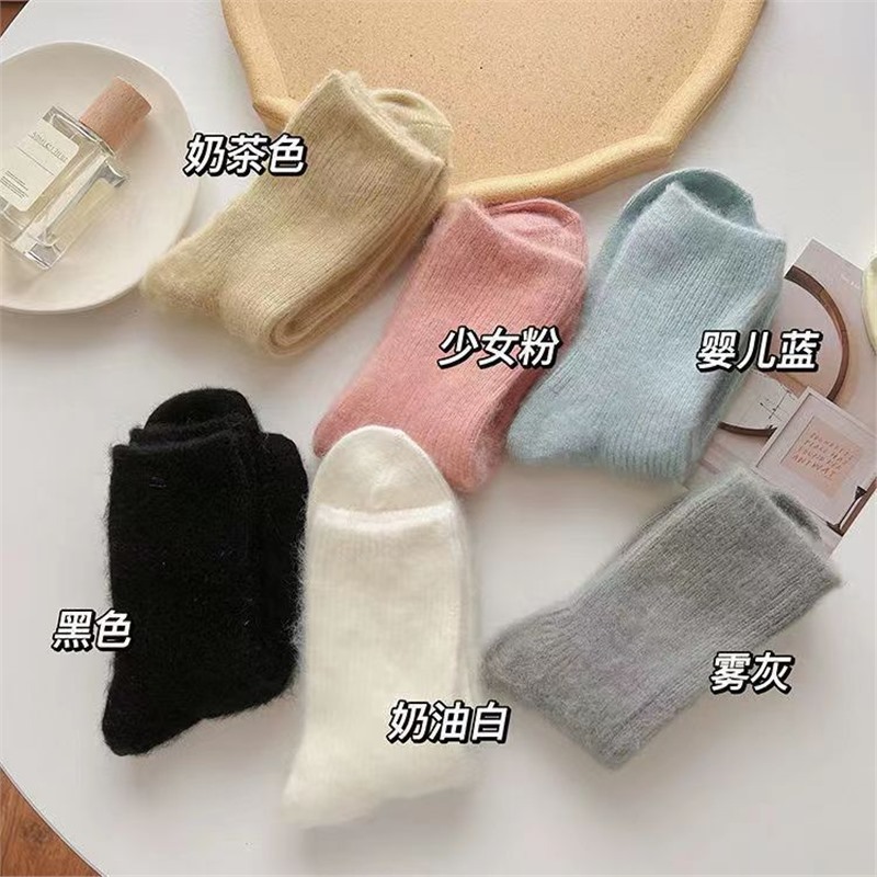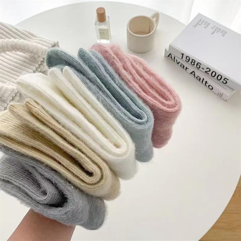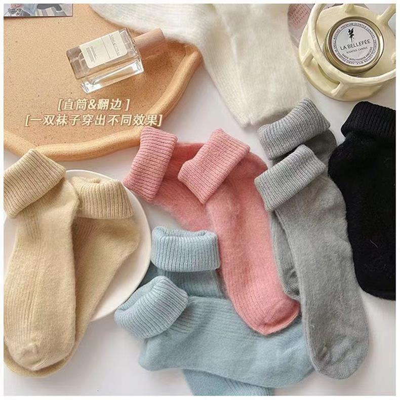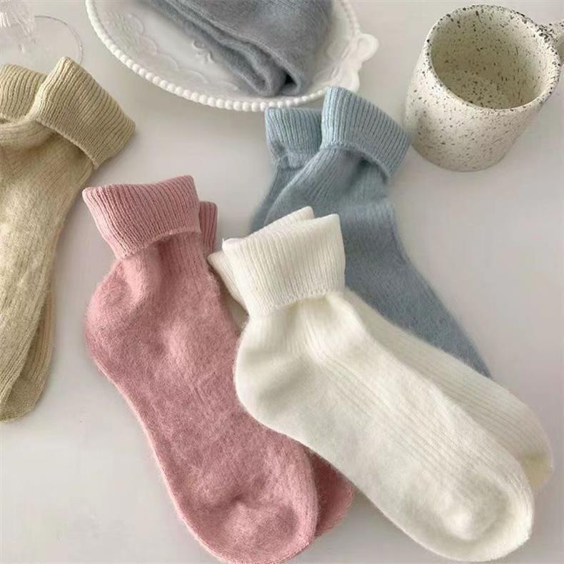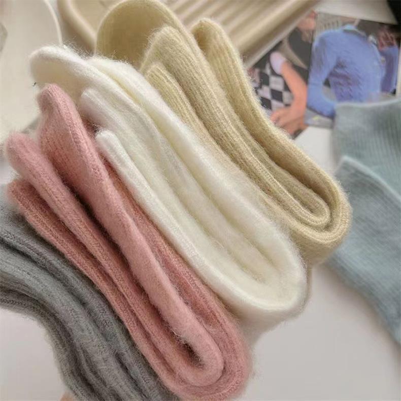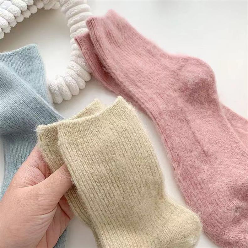 부드러운 왁스 솔리드 컬러 봉제 통기성 양말 어린이 가을과 겨울 기모 두꺼운 수직 줄무늬 중간 길이 양말 따뜻한스토어 가기