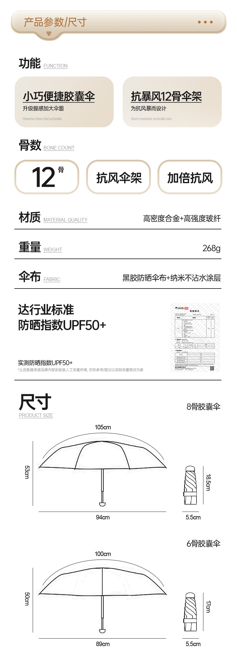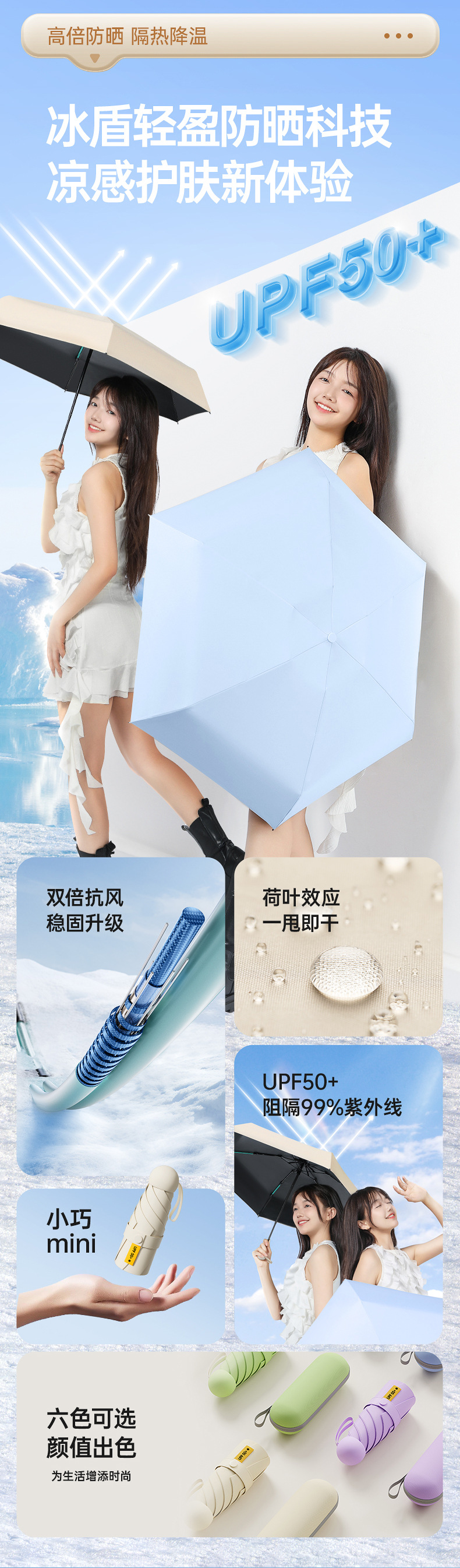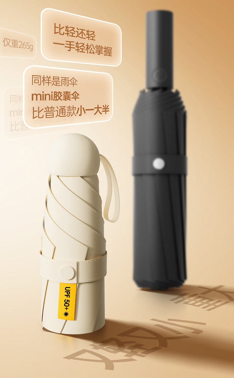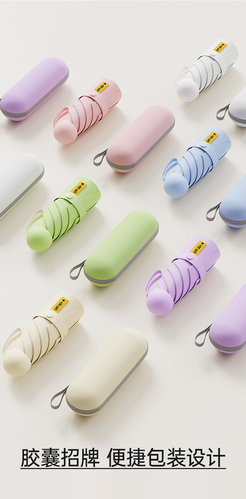• [하늘색] 6본 50% off캡슐 우산 자외선 차단제 블랙 글루 - 미니 휴대용 UPF50+