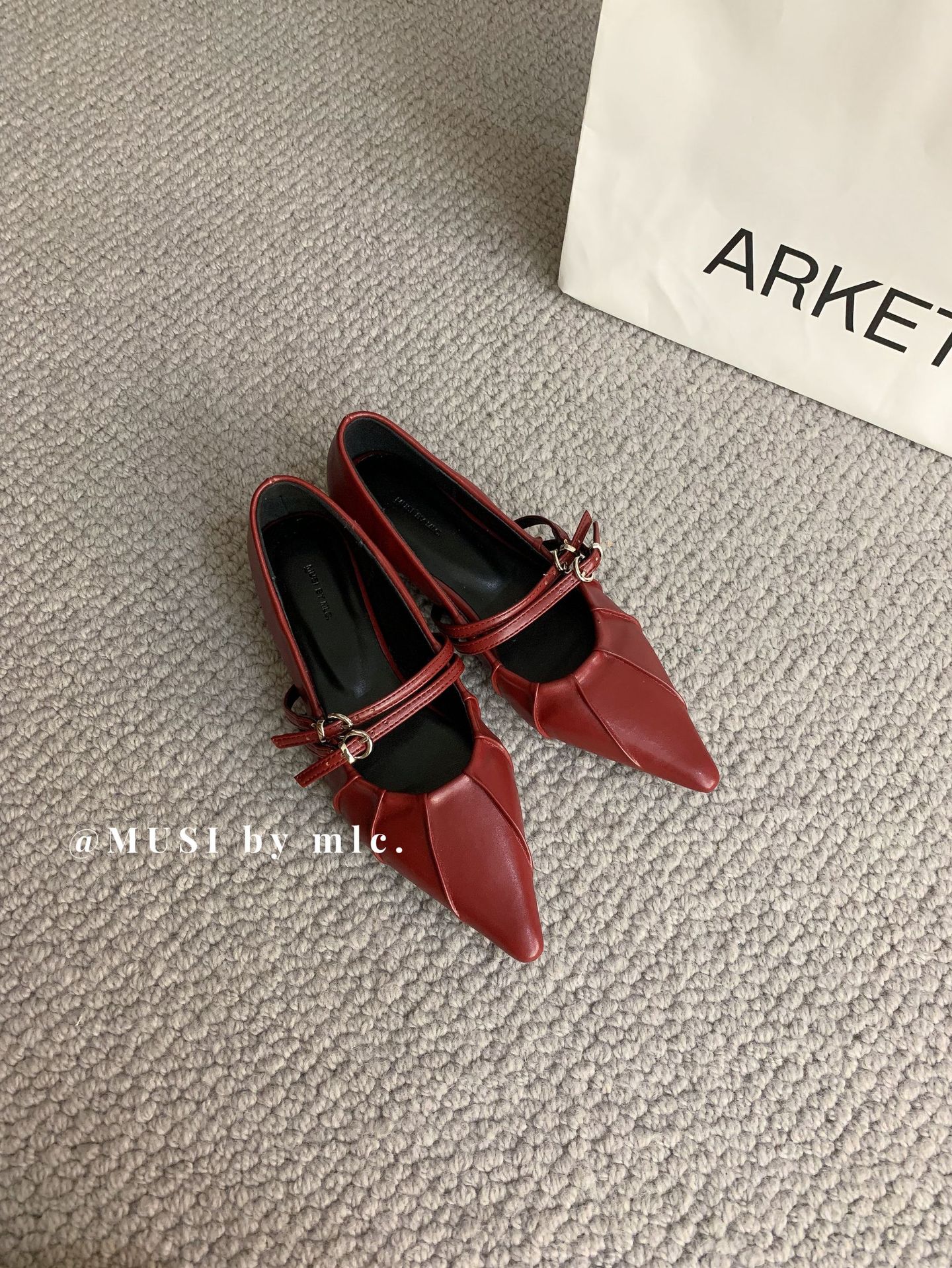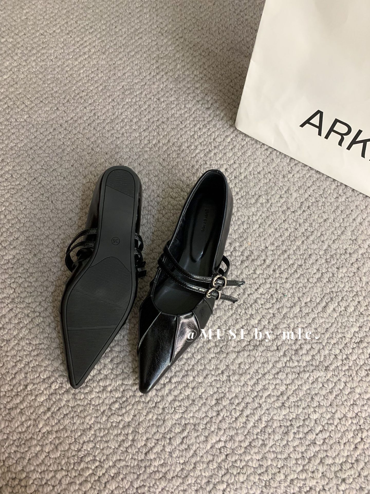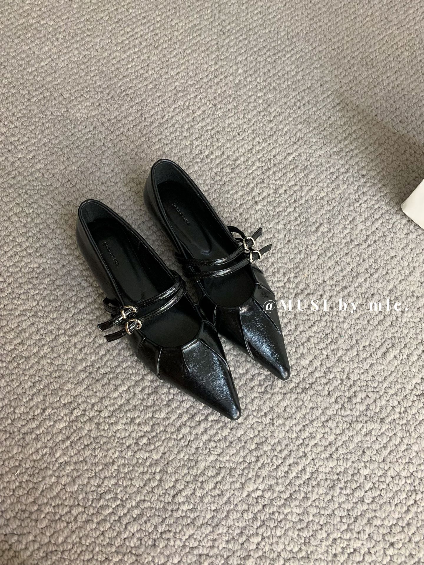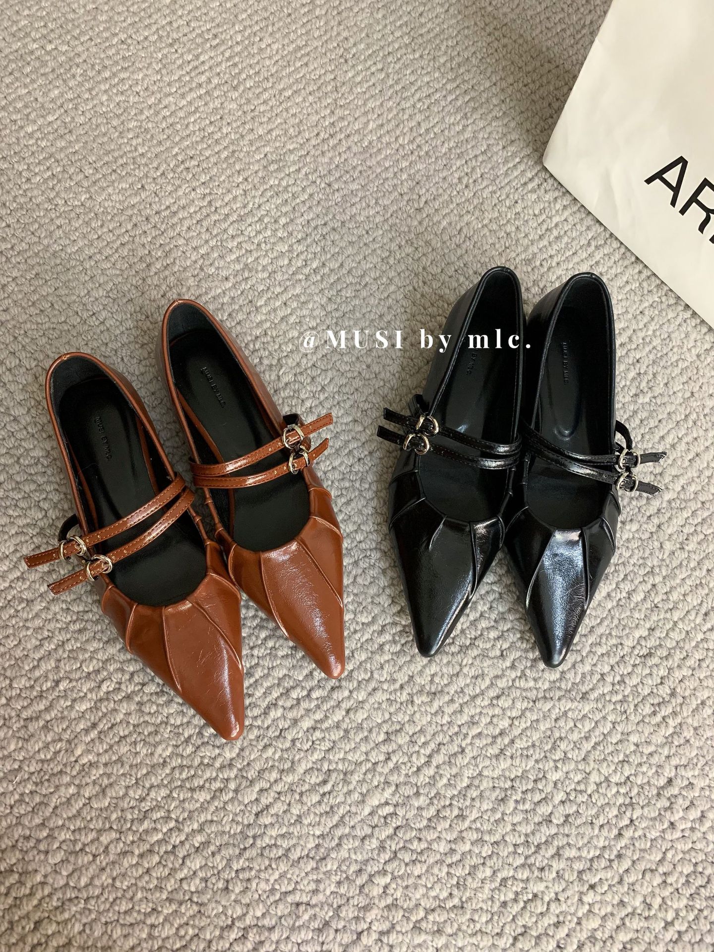 2024 새로운 가을 스타일 뾰족한 앞코 가죽 벨트 버클 소프트 솔 슬립온 여성용 다용도 비니 발레 슈즈스토어 가기
