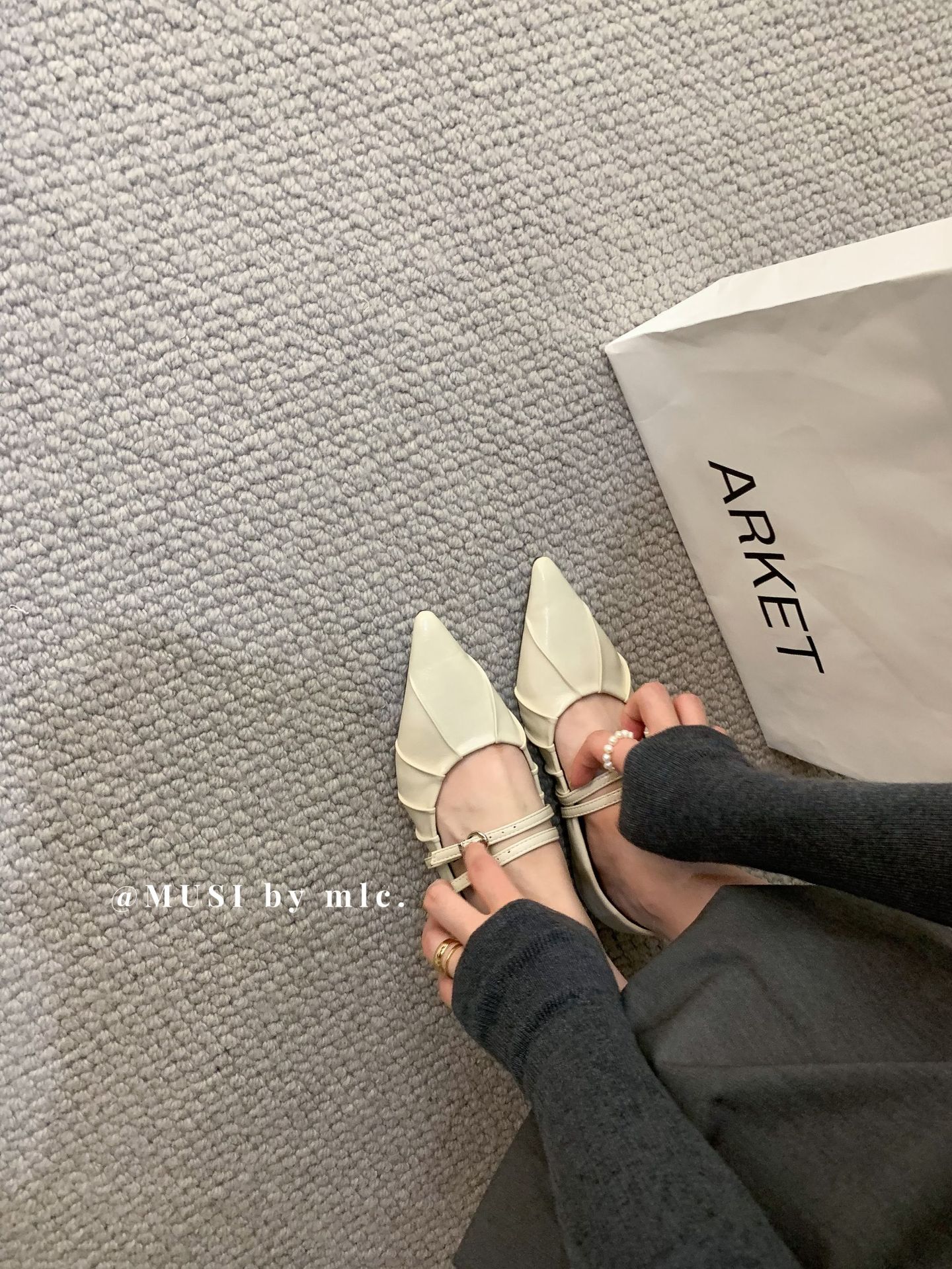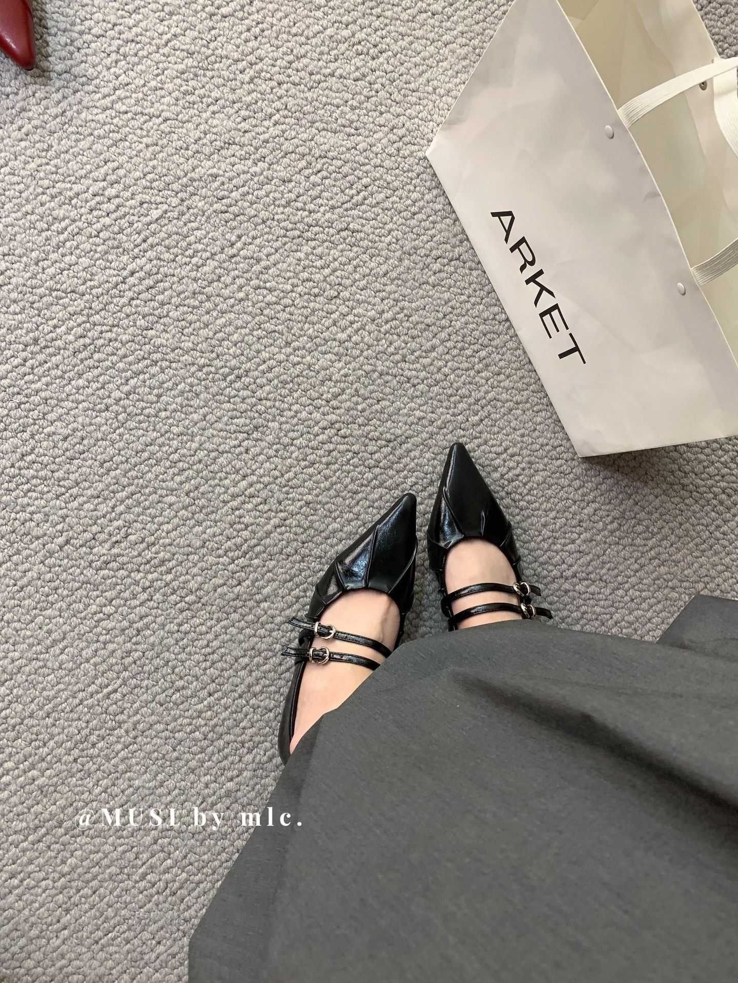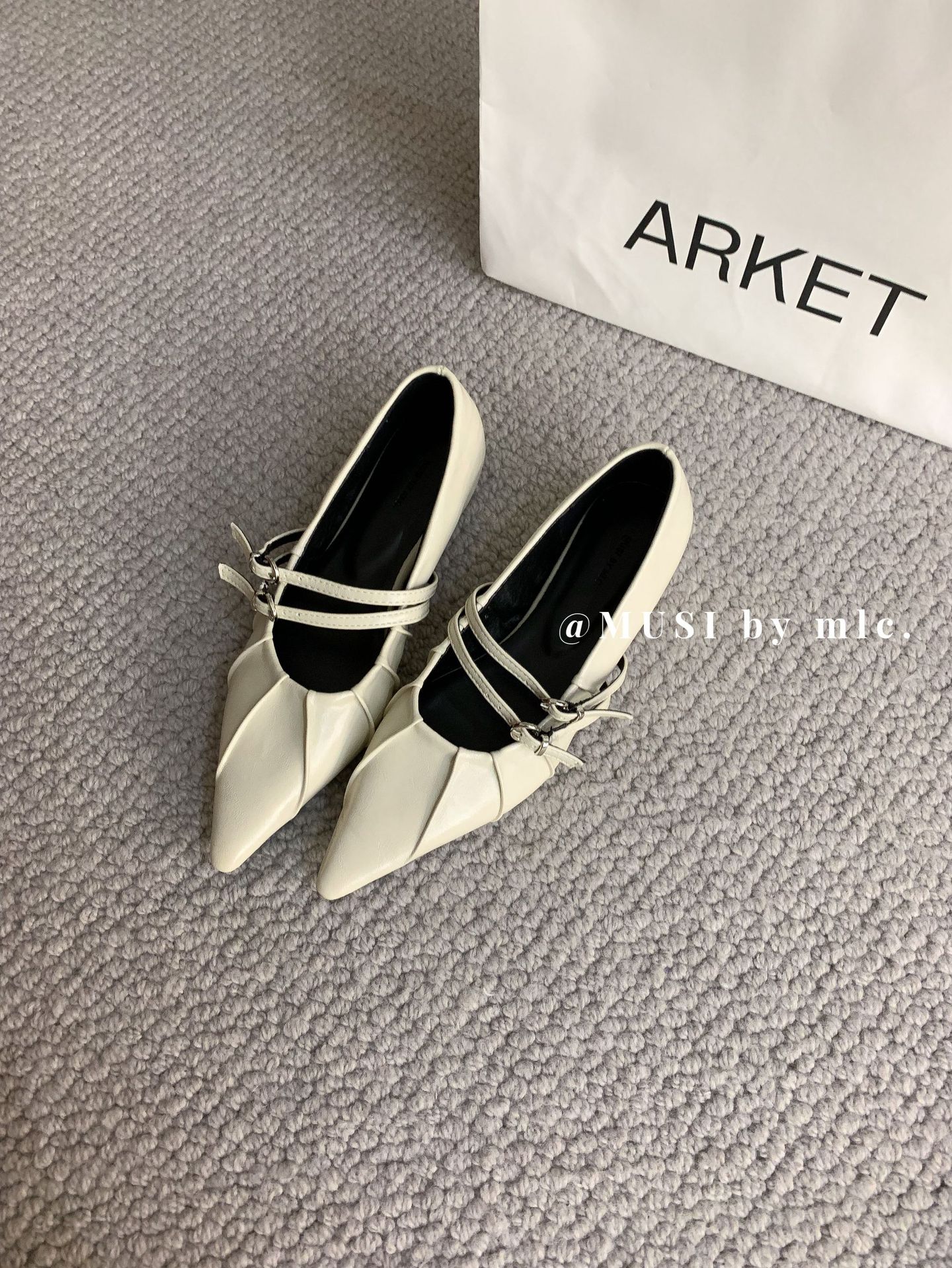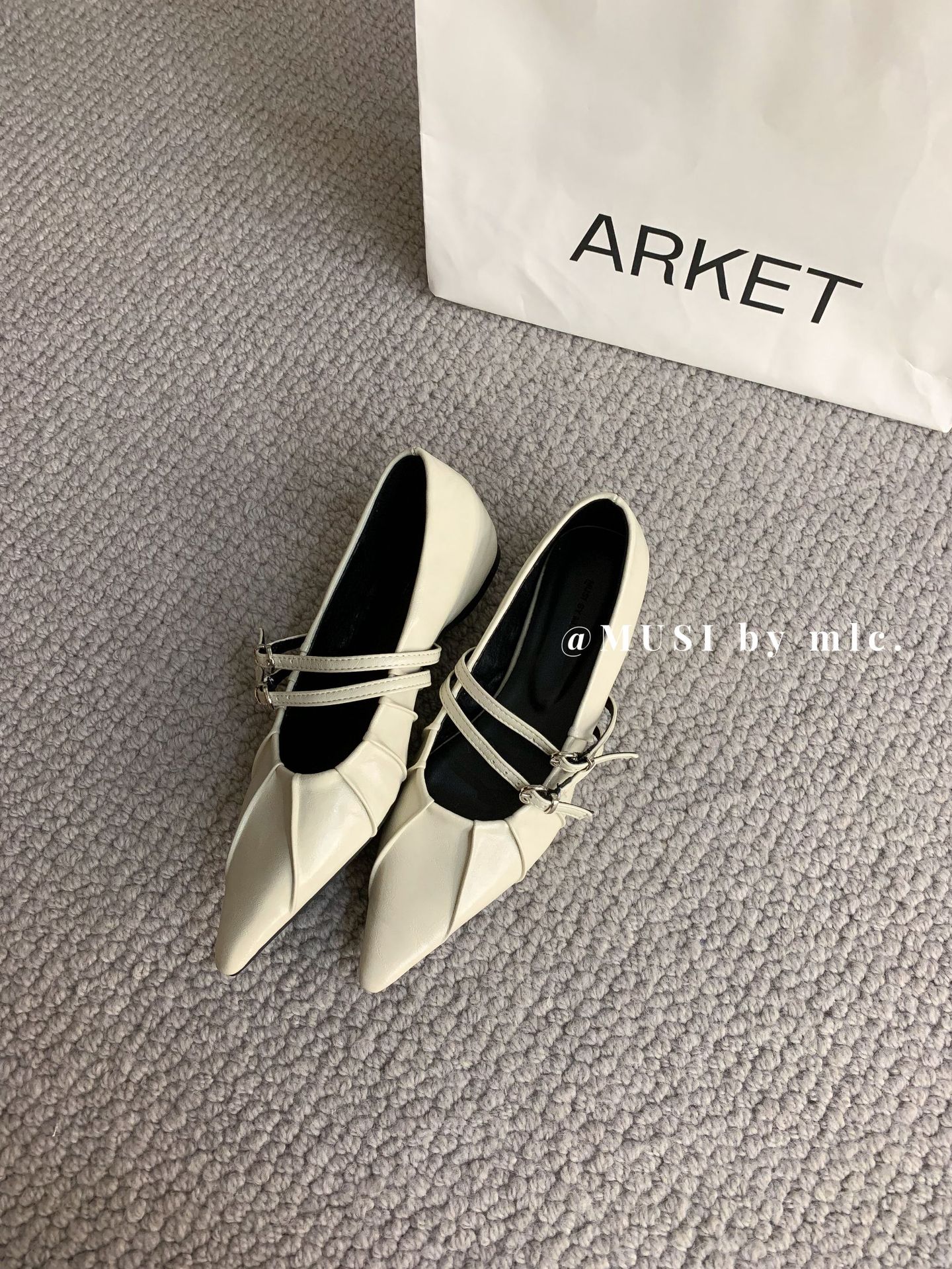 2024 새로운 가을 스타일 뾰족한 앞코 가죽 벨트 버클 소프트 솔 슬립온 여성용 다용도 비니 발레 슈즈스토어 가기