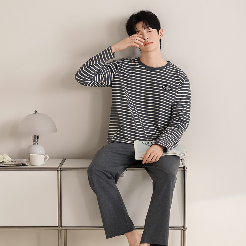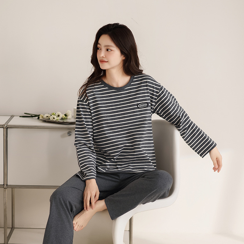 2024 년 봄과 가을 커플을위한 새로운 긴팔 면화 파자마 코튼 랙 캐주얼 의류 남성 및 여성 홈 의류 세트스토어 가기
