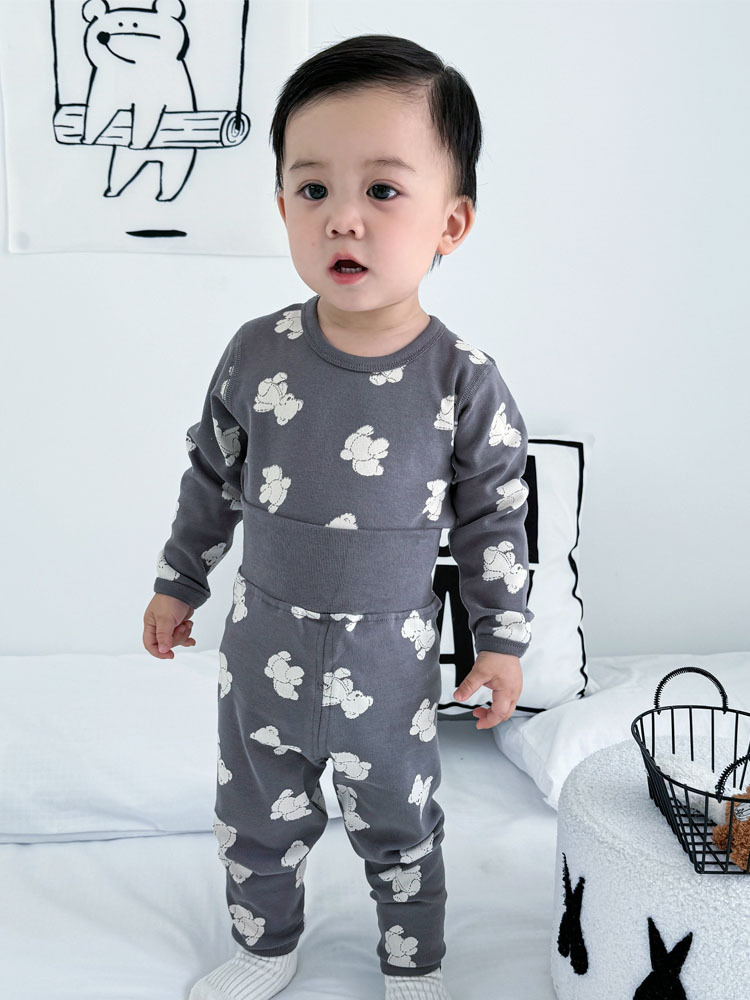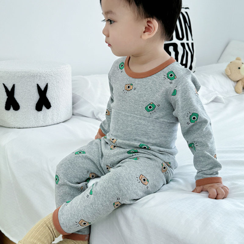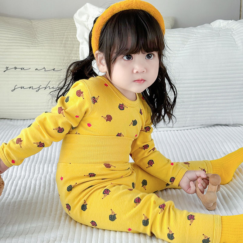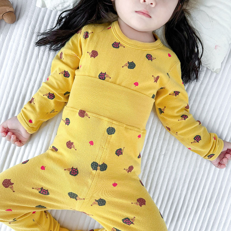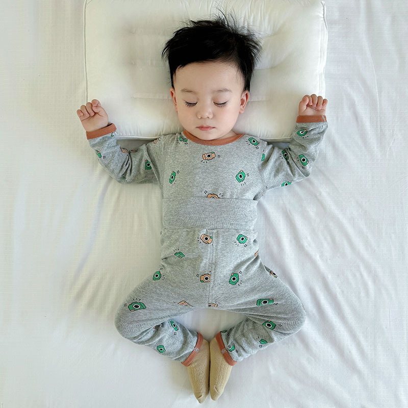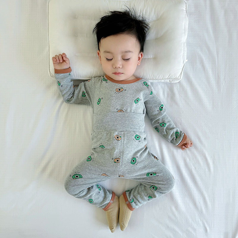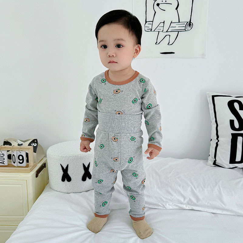 가을과 겨울 아기의 가을 옷과 바지 면 뼈없는 소년의 아기 높은 허리 배꼽 보호자 어린이 열 속옷 세트 클래스 A스토어 가기