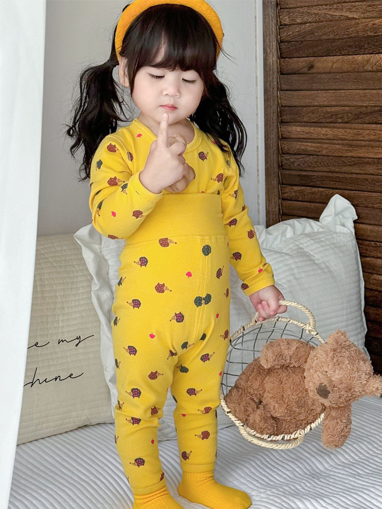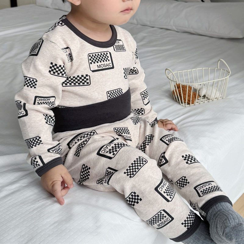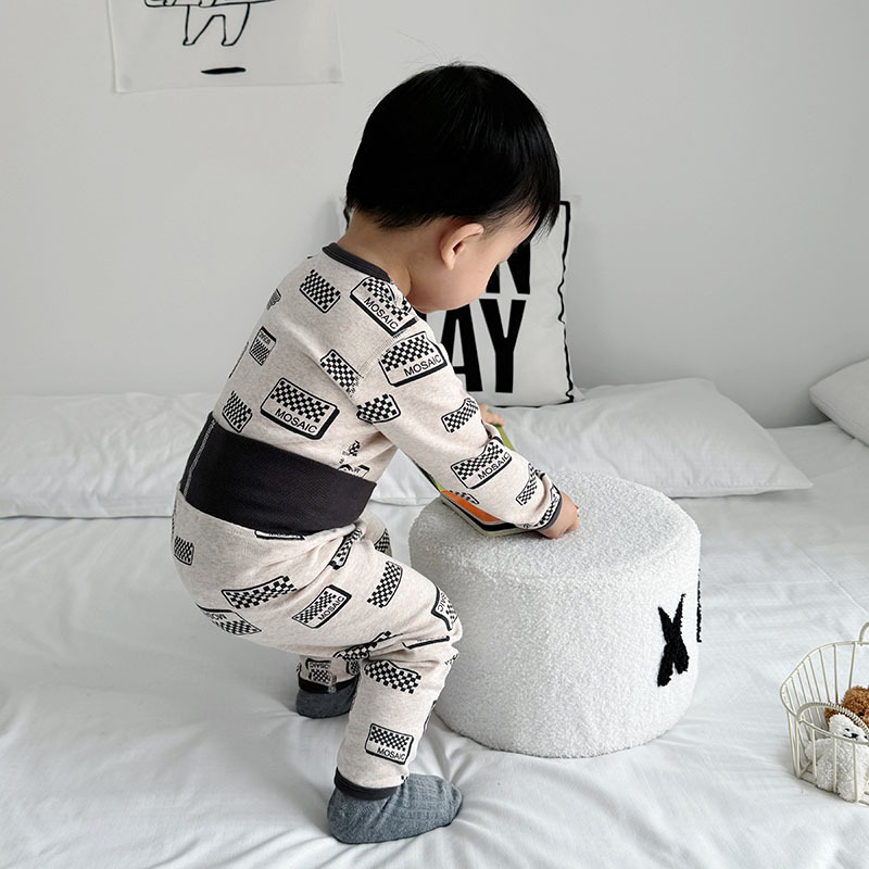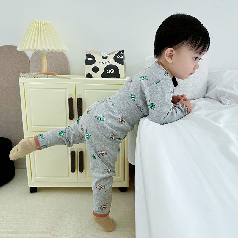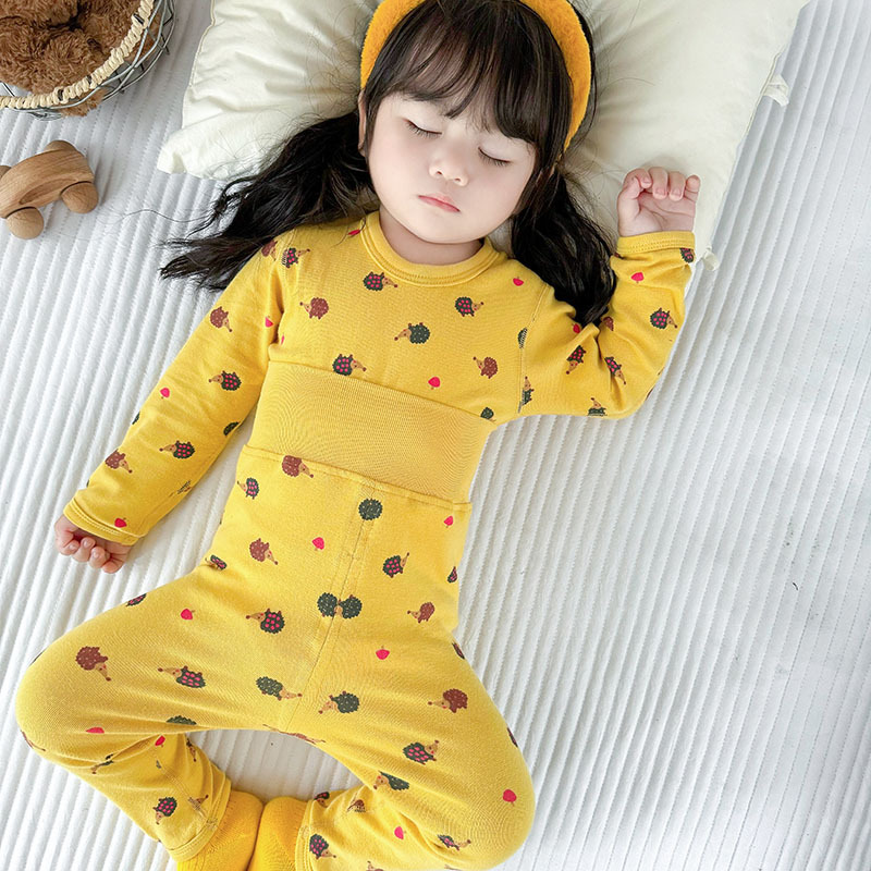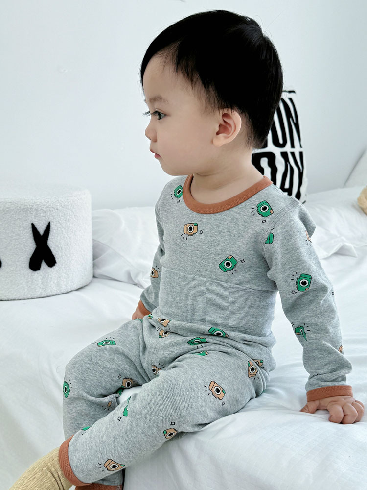 가을과 겨울 아기의 가을 옷과 바지 면 뼈없는 소년의 아기 높은 허리 배꼽 보호자 어린이 열 속옷 세트 클래스 A스토어 가기