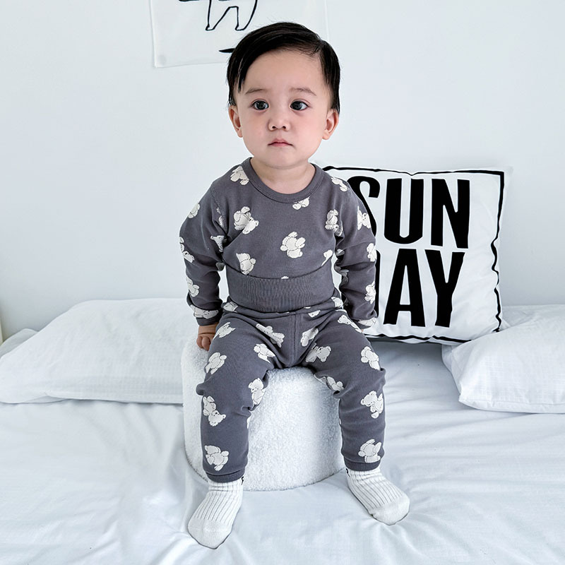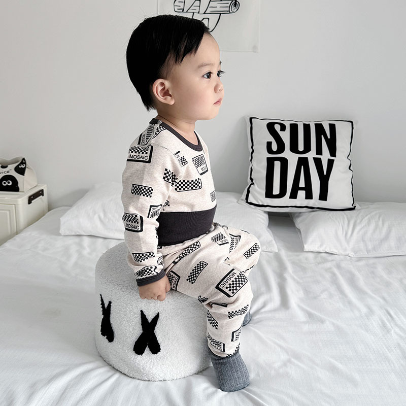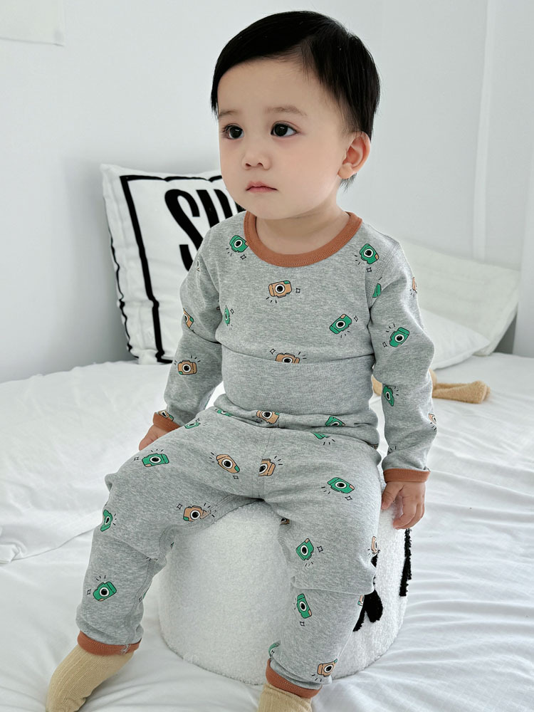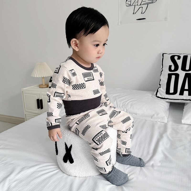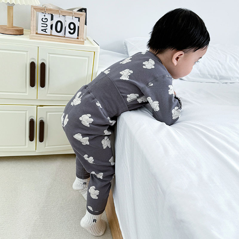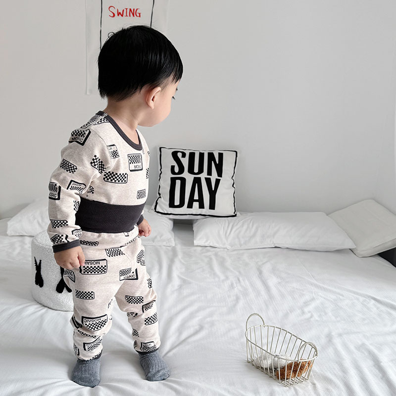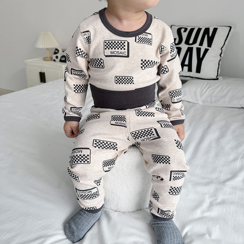 가을과 겨울 아기의 가을 옷과 바지 면 뼈없는 소년의 아기 높은 허리 배꼽 보호자 어린이 열 속옷 세트 클래스 A스토어 가기