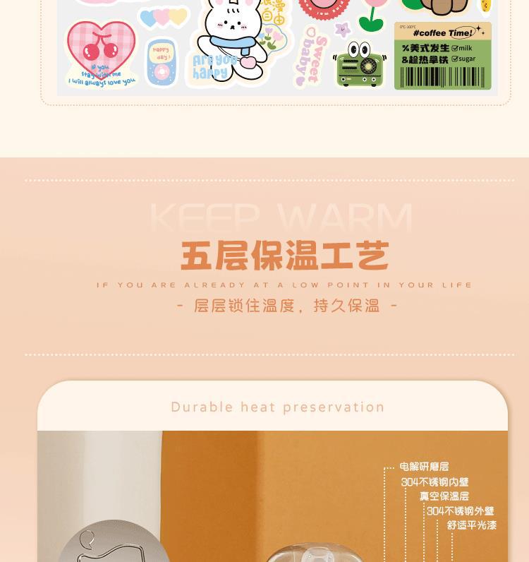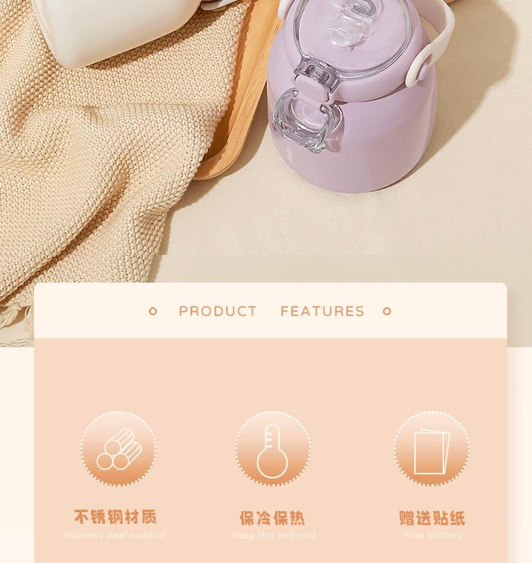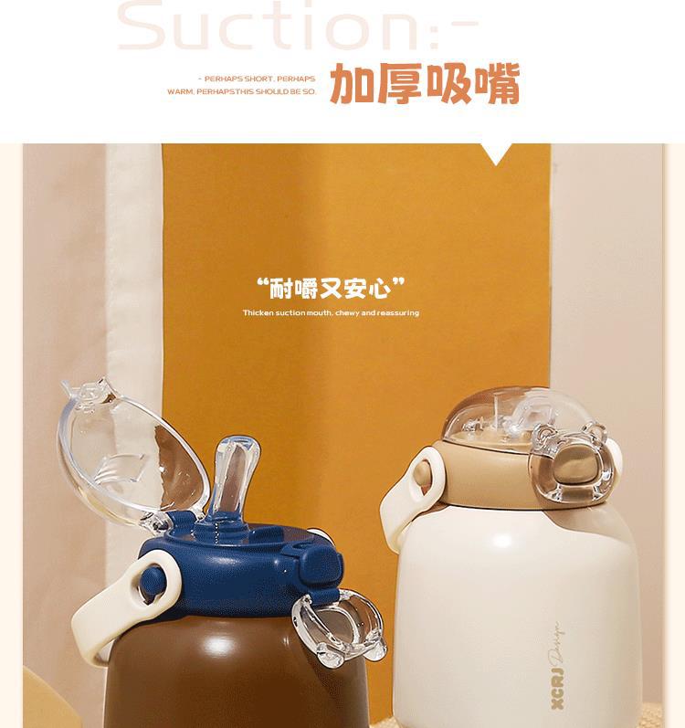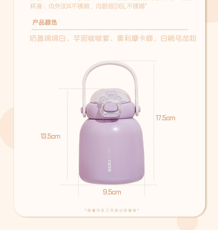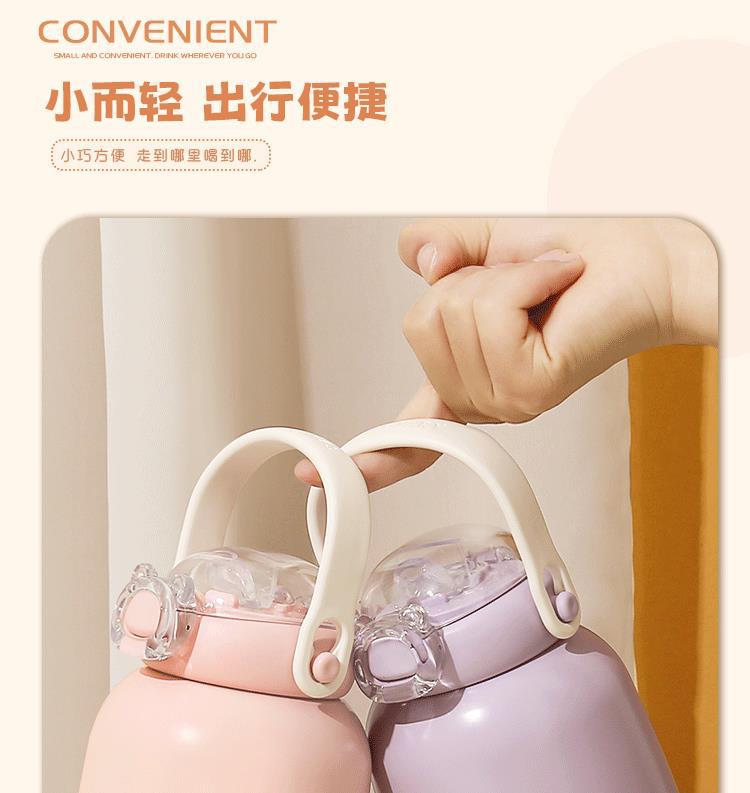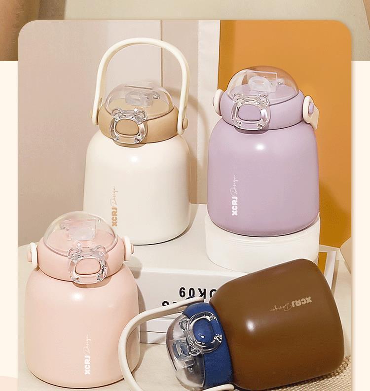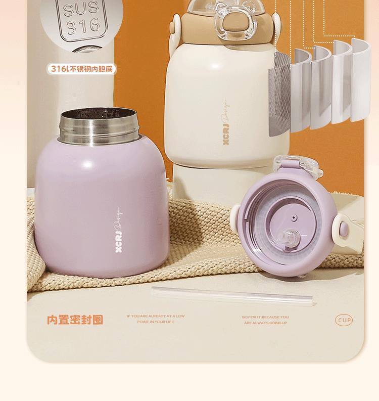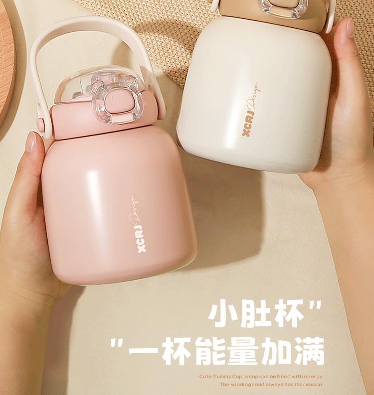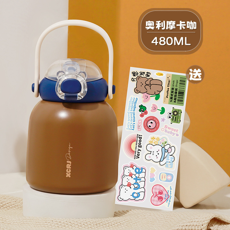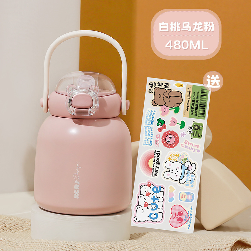 작은 차 일기 316 스테인레스 스틸 어린이 보온병 컵 480ml 흡입 튜브 컵 숙녀 귀여운 휴대용 주전자 큰 배꼽 컵스토어 가기