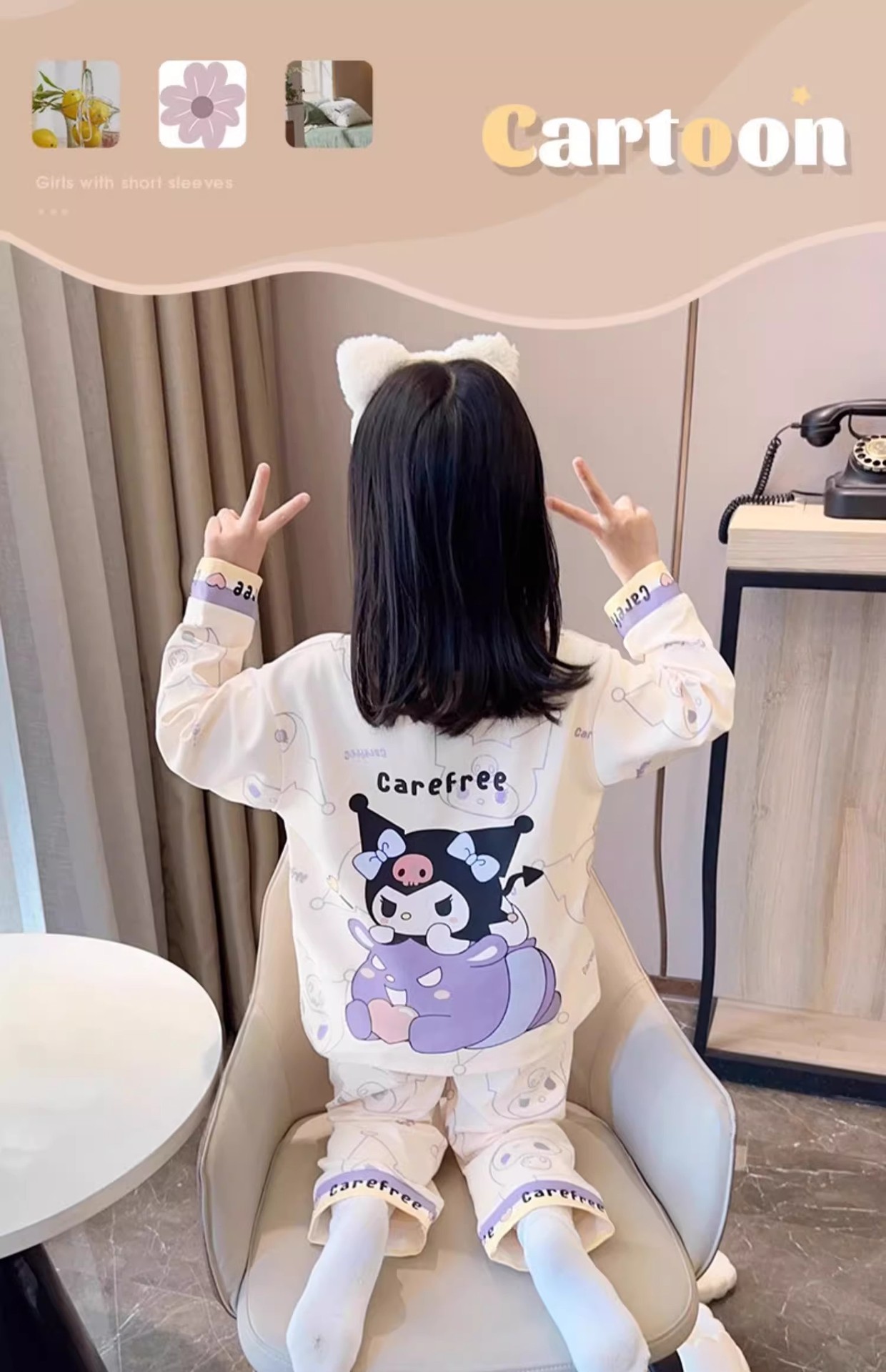 2024 새로운 어린이 잠옷 소녀 긴팔 바지 봄과 가을 큰 소년 소녀 공주 얇은 여름 홈 옷스토어 가기