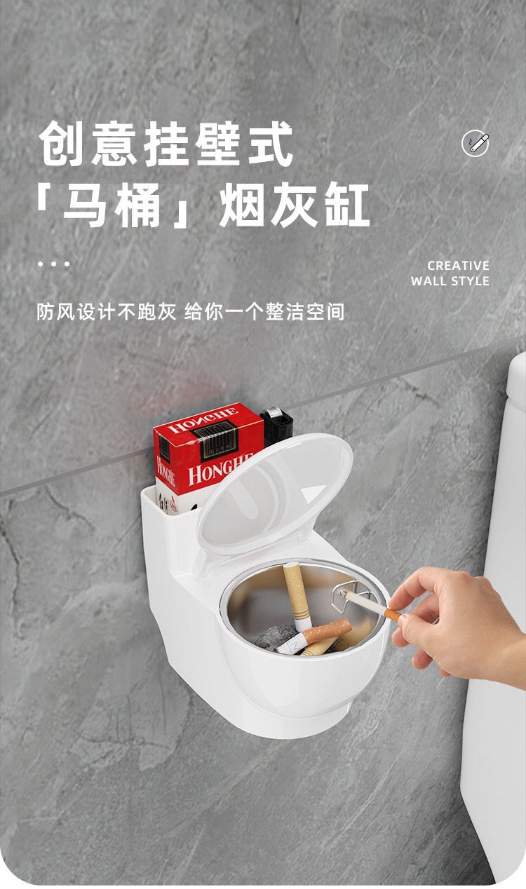 창조적 인 벽걸이 형 화장실 재떨이 홈 거실 욕실 화장실 안티 플라이 애쉬 재떨이 뚜껑 라이트 럭셔리