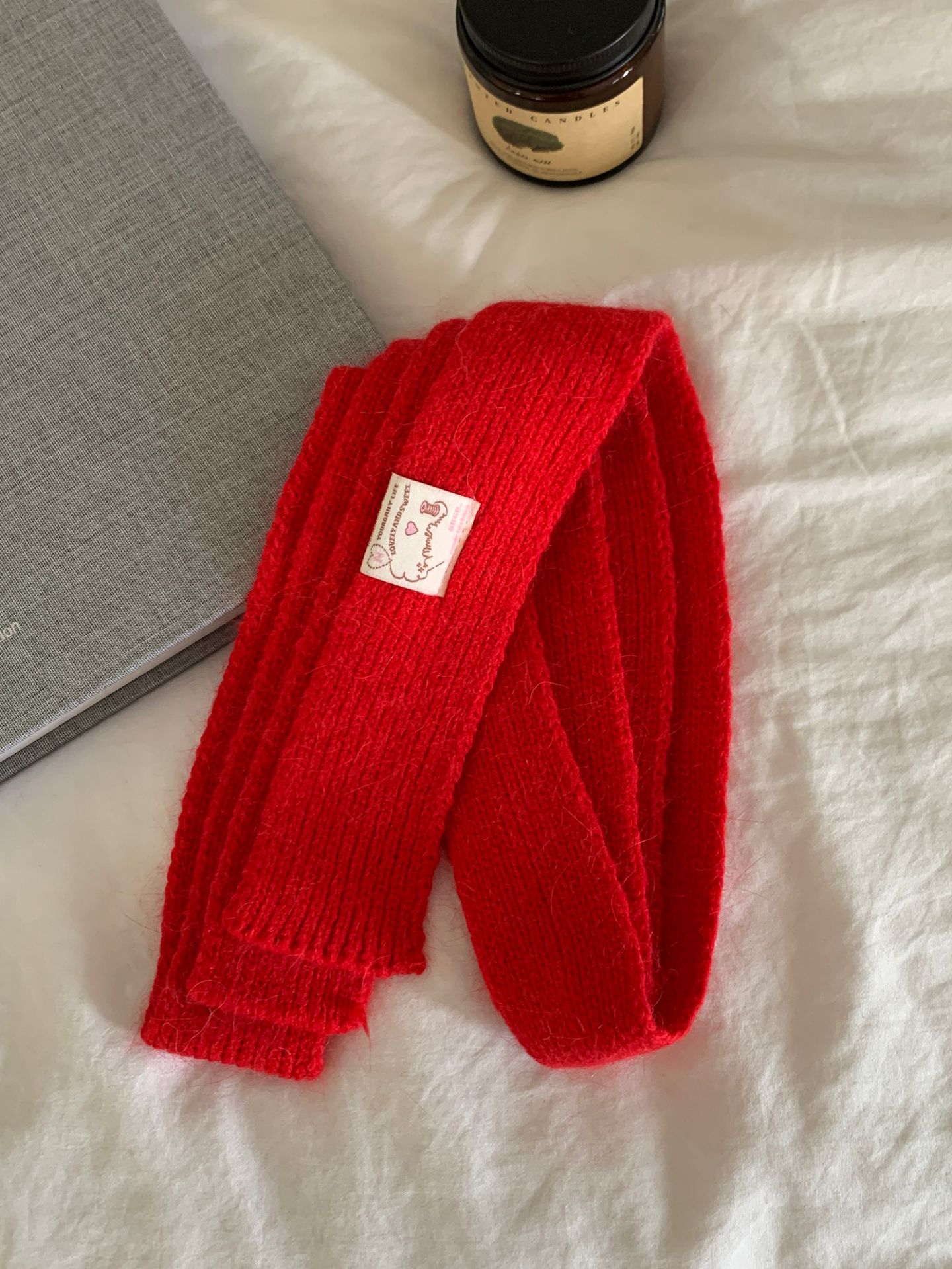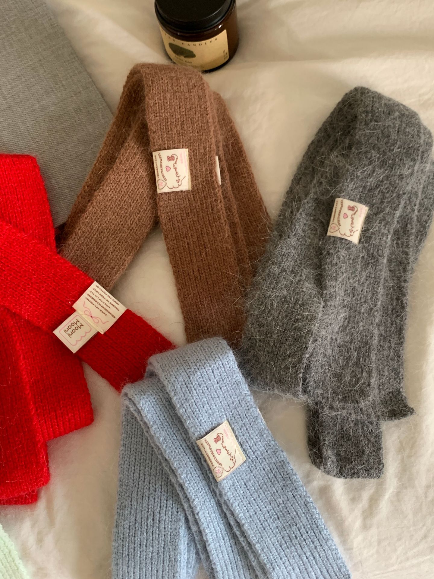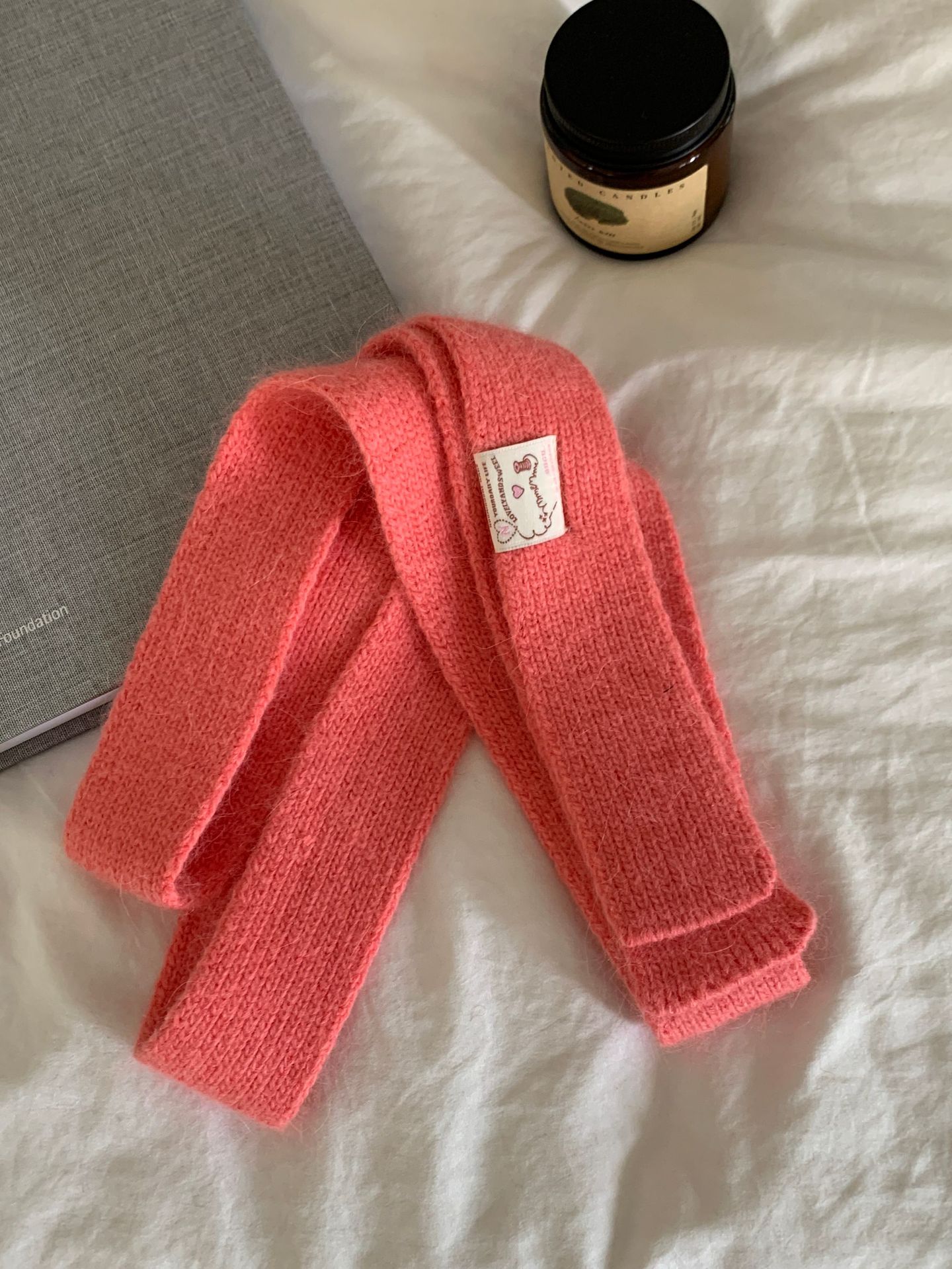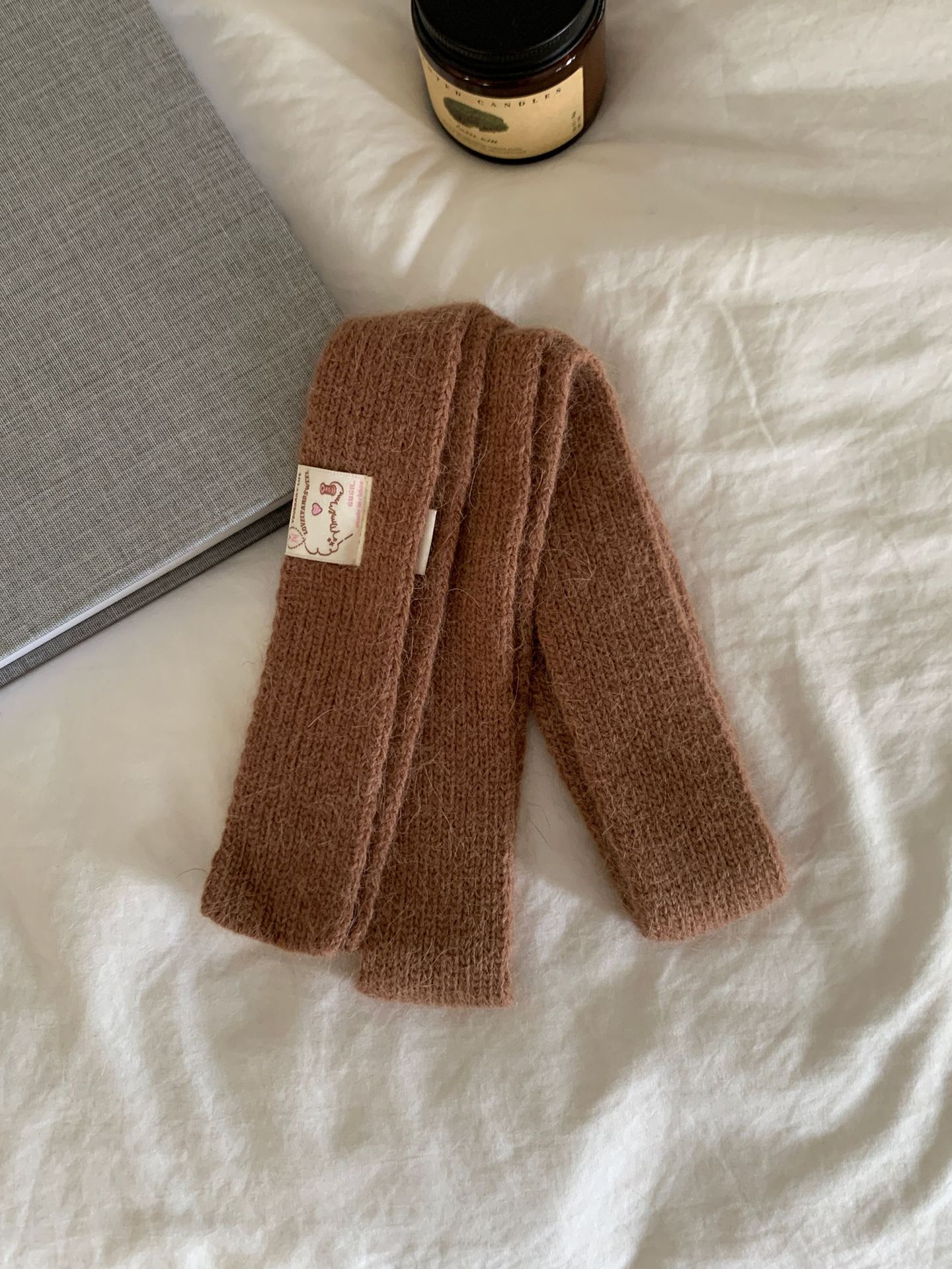 마카롱 컬러의 부드러운 만화 직물, 토끼털이 들어간 좁고 긴 스카프, 밀레니얼 스타일의 작은 스카프, 겨울 학생