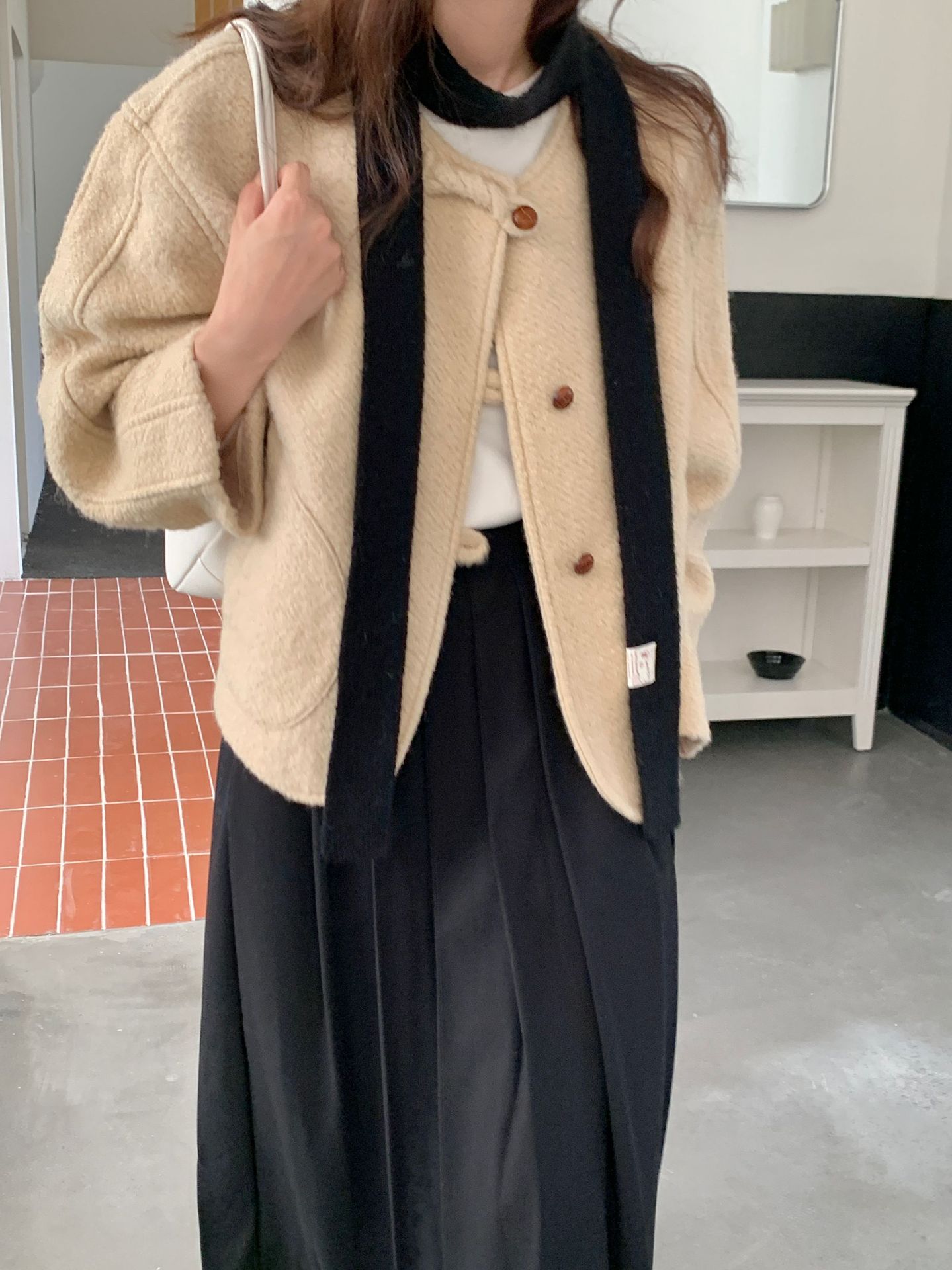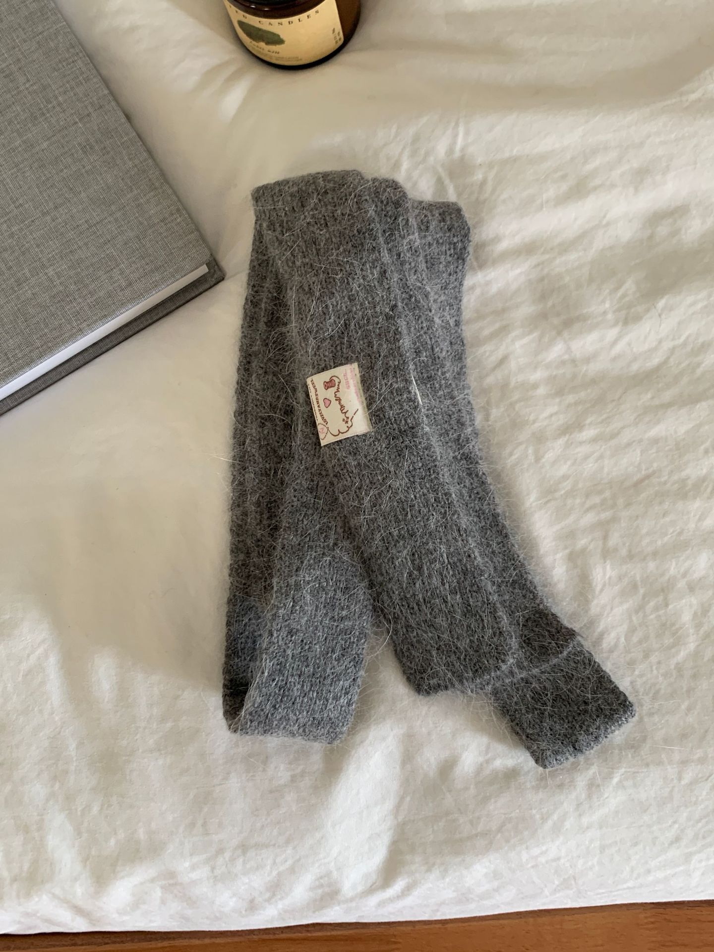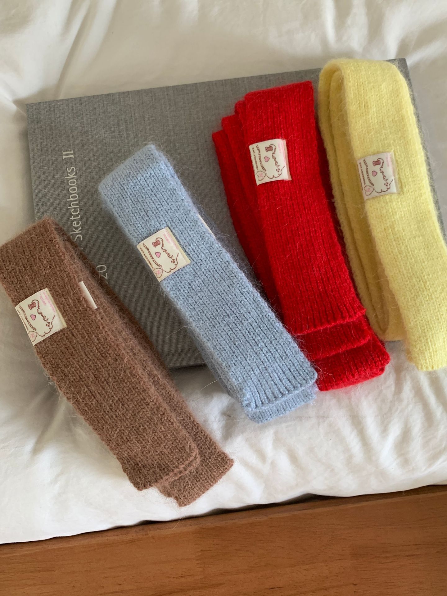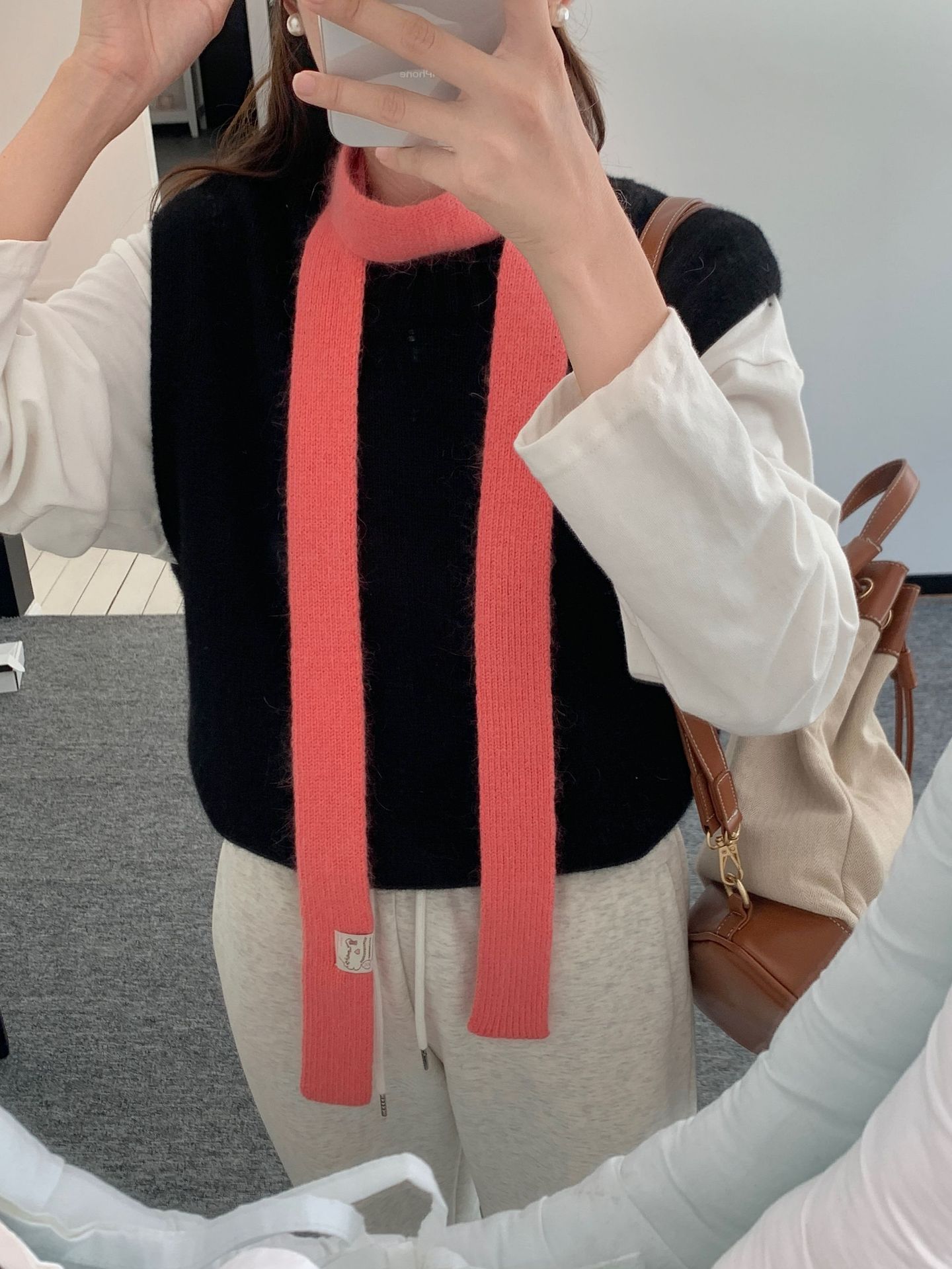 마카롱 컬러의 부드러운 만화 직물, 토끼털이 들어간 좁고 긴 스카프, 밀레니얼 스타일의 작은 스카프, 겨울 학생