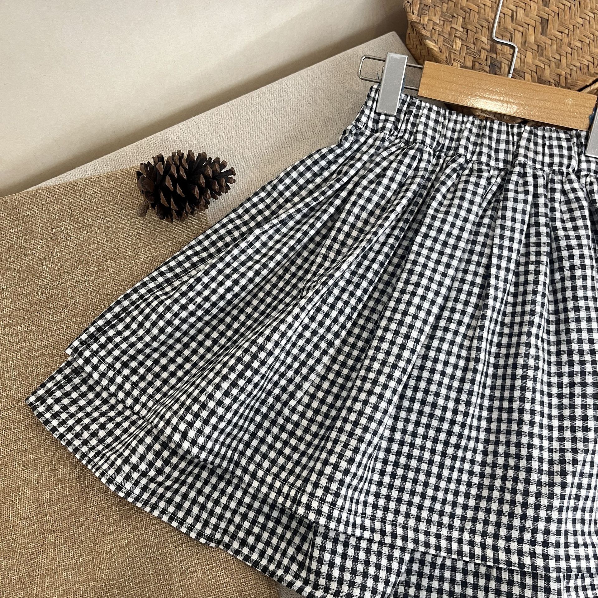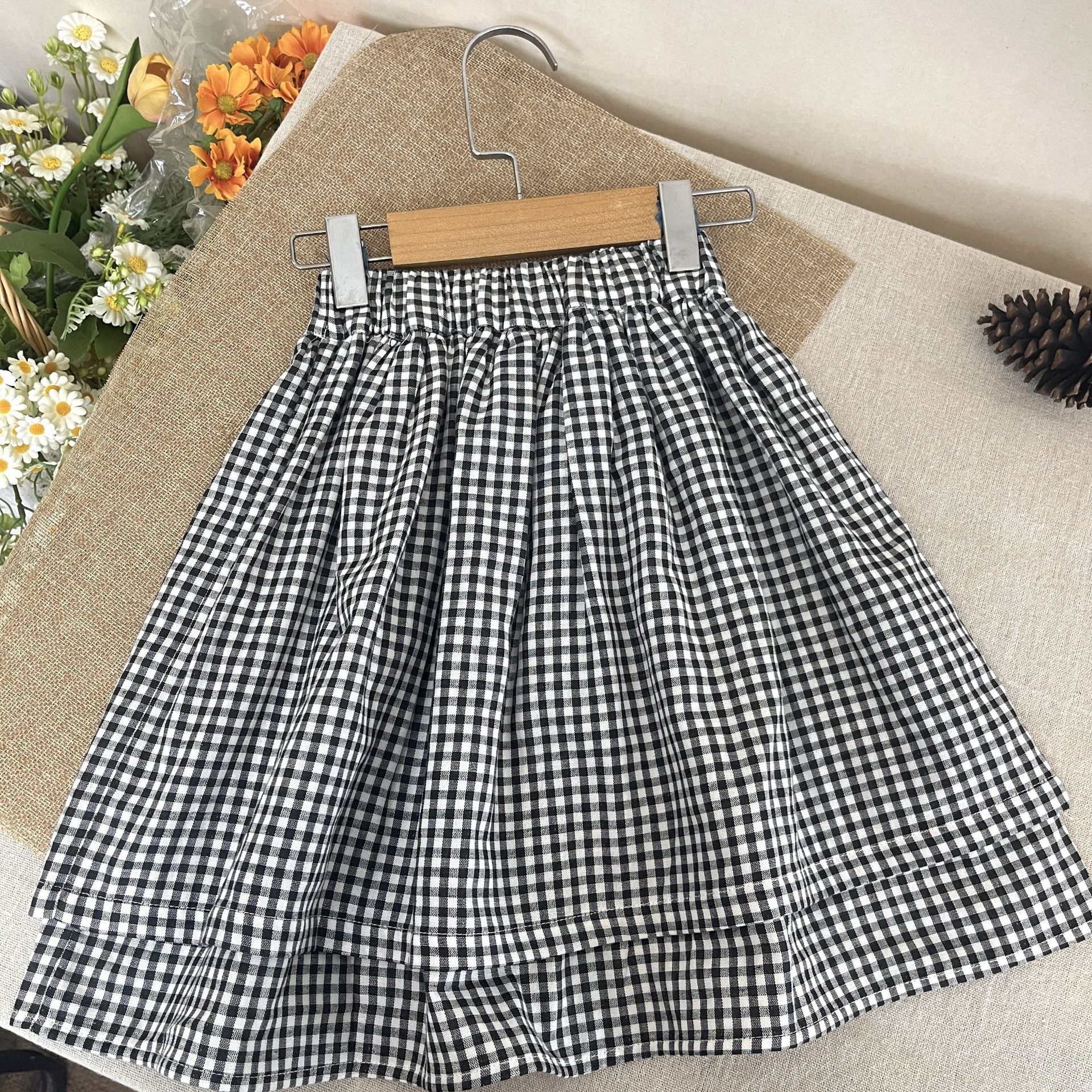 2024 가을 소녀 새로운 한국 스타일 다목적 체크 무늬 스커트 아기 가을 클래식 코튼 스커트스토어 가기