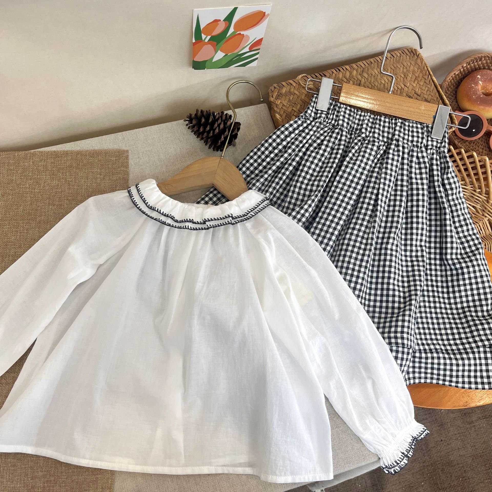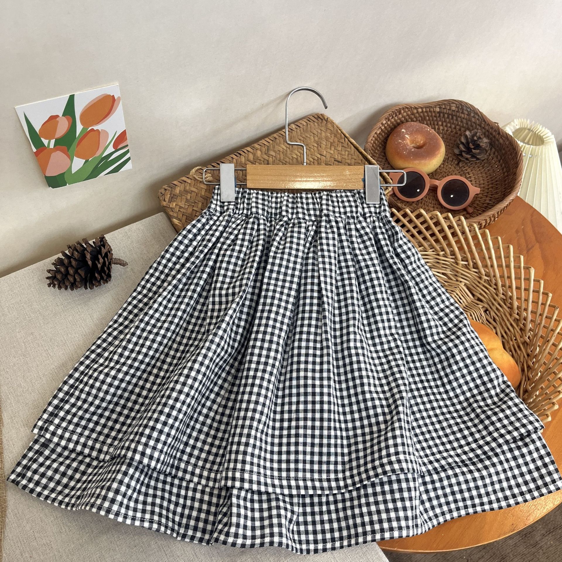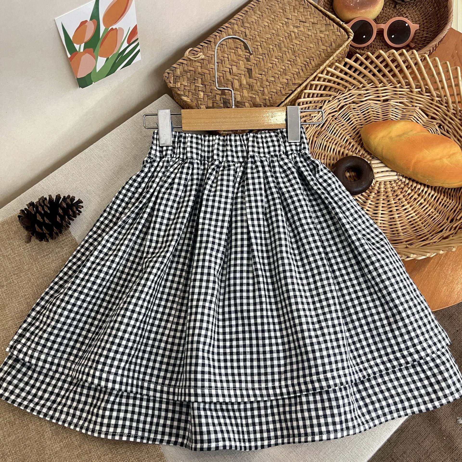 2024 가을 소녀 새로운 한국 스타일 다목적 체크 무늬 스커트 아기 가을 클래식 코튼 스커트