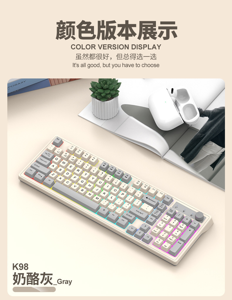 국경 바이퍼 K98 블루투스 무선 2.4G 듀얼 모드 컬러 손잡이 기계 느낌 필름 키보드 게임 사무실스토어 가기