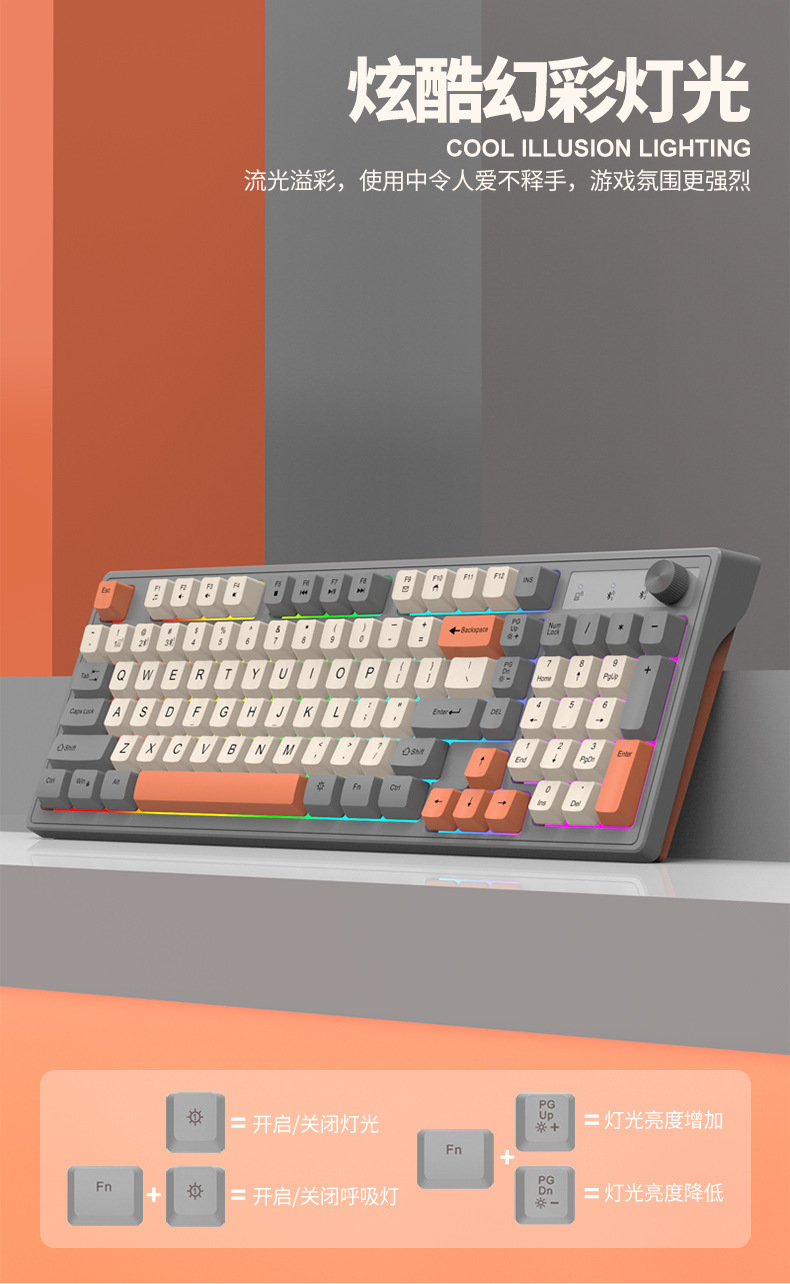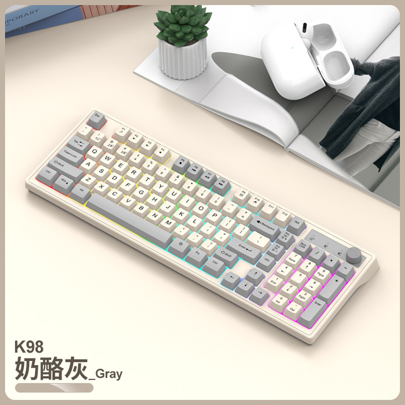 국경 바이퍼 K98 블루투스 무선 2.4G 듀얼 모드 컬러 손잡이 기계 느낌 필름 키보드 게임 사무실