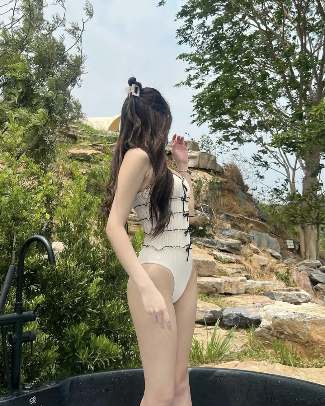 2024 한국 새로운 섹시한 슬림 배꼽 보수 패션 작은 활 장식 결합 된 수영복 여성스토어 가기