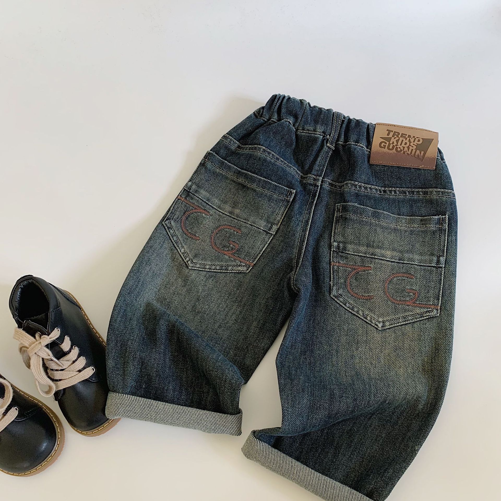 Mai Bao 아동용 청바지 202 봄 신작 아동복 포켓 자수 캐주얼 바지 소년 스트레이트 다용도 바지