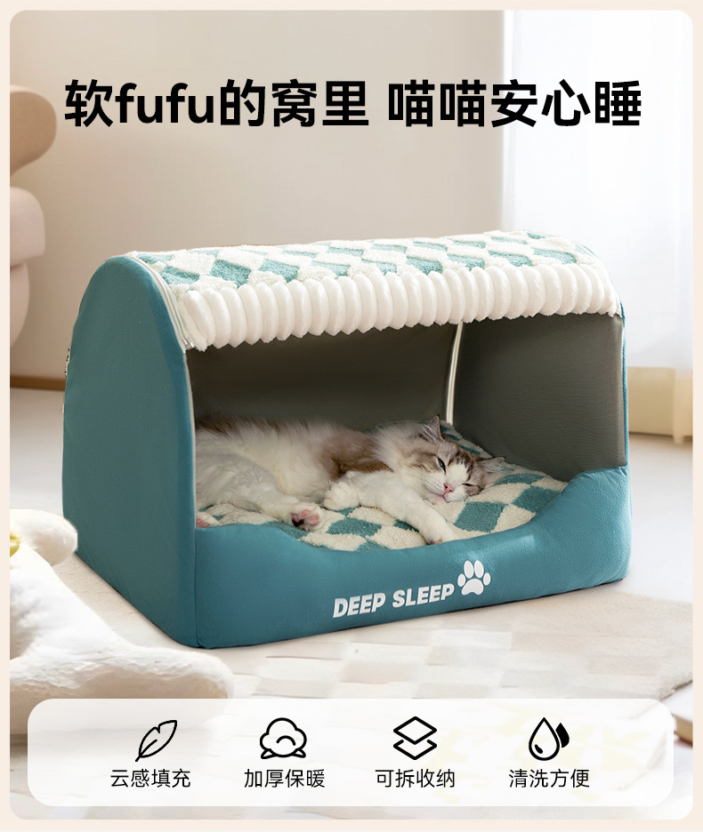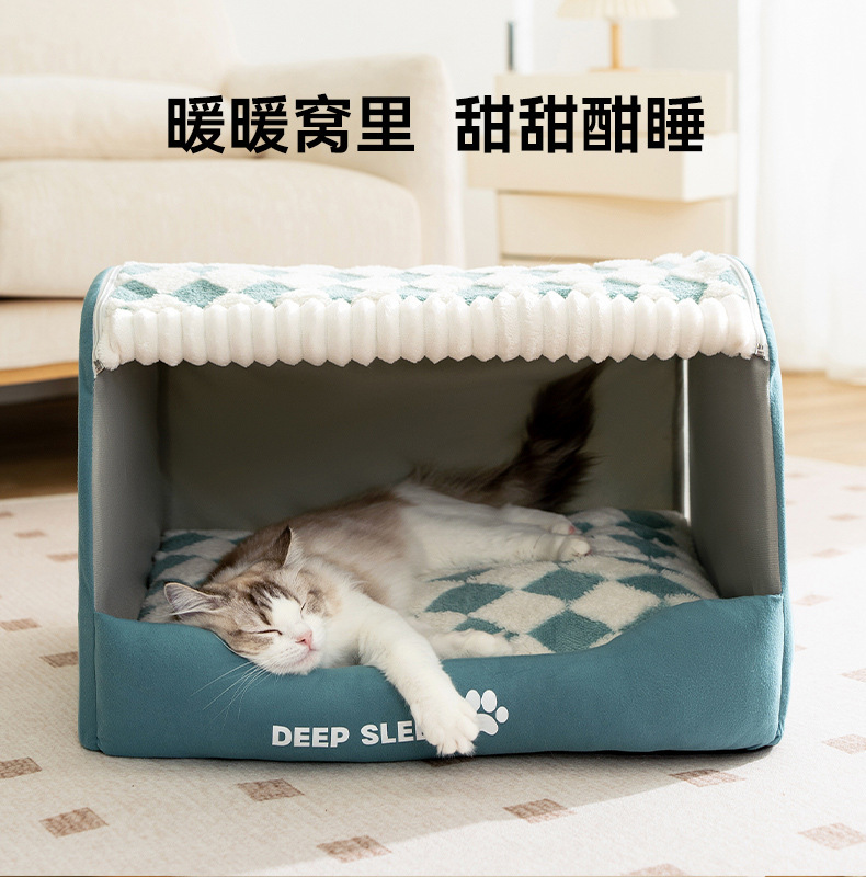 아마존 신형 애완동물 집 중성 스타일 넓은 공간 서랍형 고양이 집 반폐쇄형 가을 겨울 따뜻한 고양이 강아지 집스토어 가기