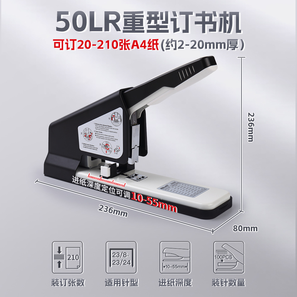 우수한 50LA 대형 금속 바인딩 기계 사무실 스테이플러 노동 절약 스테이플러 210 페이지 스테이플러스토어 가기
