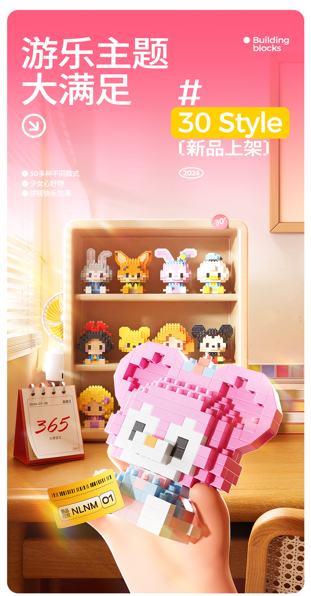 레고 팬더 딸기 곰 만화 인형 빌딩 블록 마이크로 입자 조립 어린이 교육 장난감 국경 도매스토어 가기