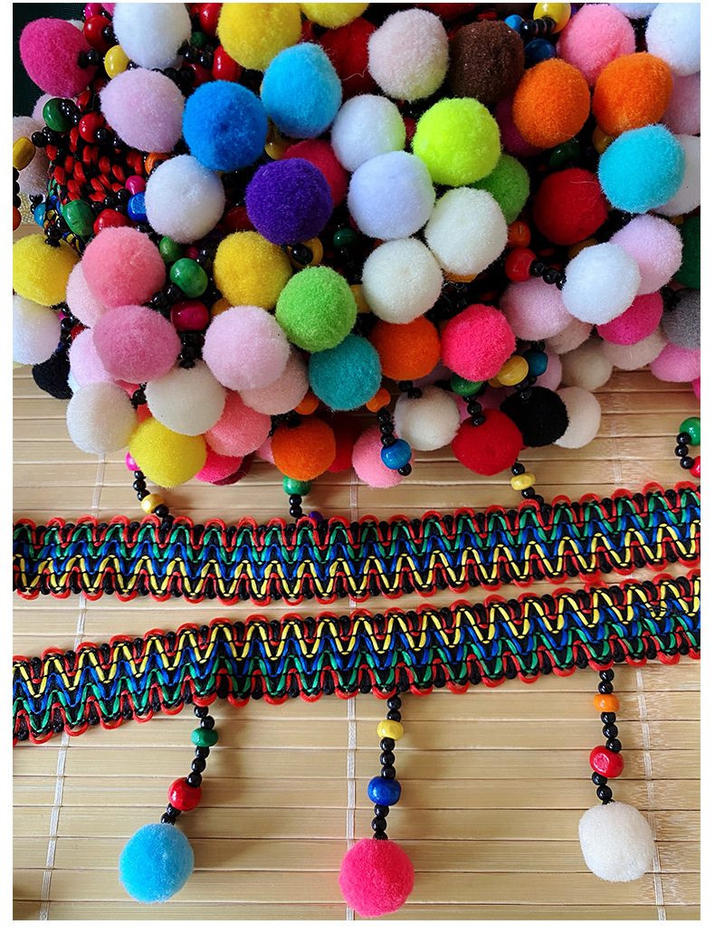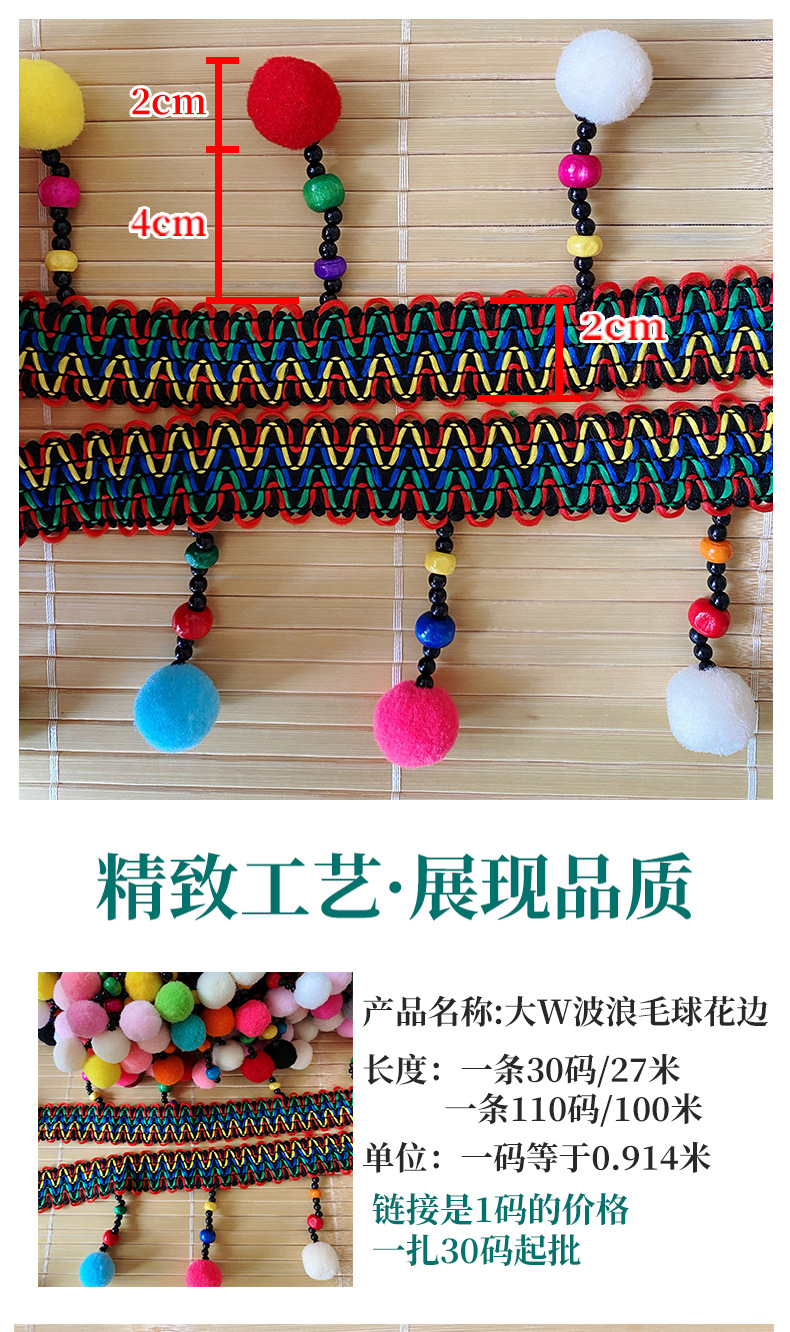 공장 직판 다채로운 민족풍 수제 2cm 3모털볼 큰 물결무늬 넓은 레이스 장식 의류, 홈텍스타일, 스카프 테두리 장식스토어 가기
