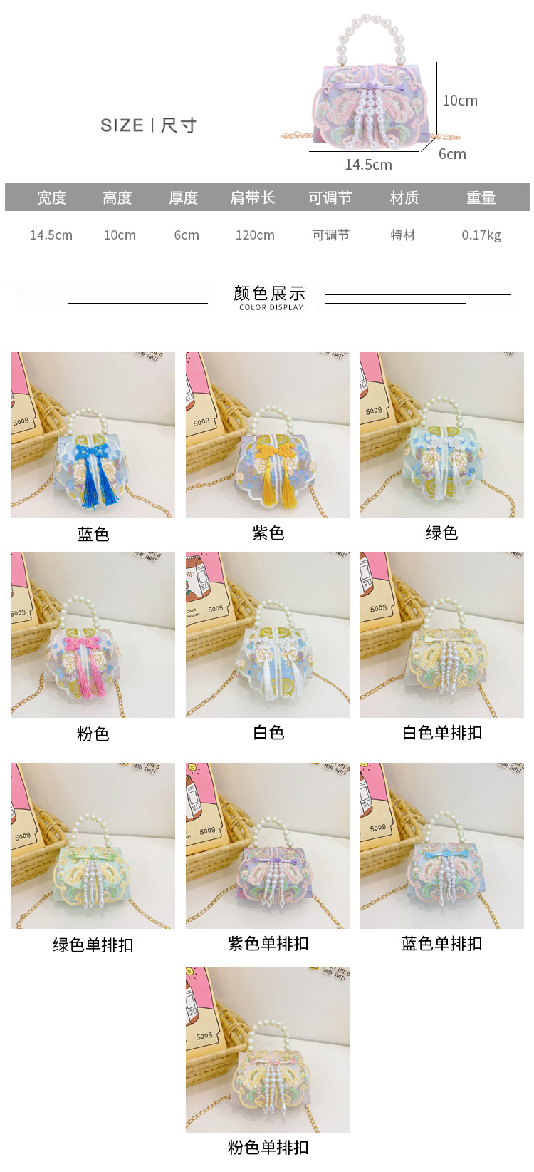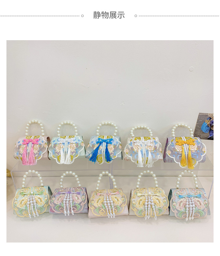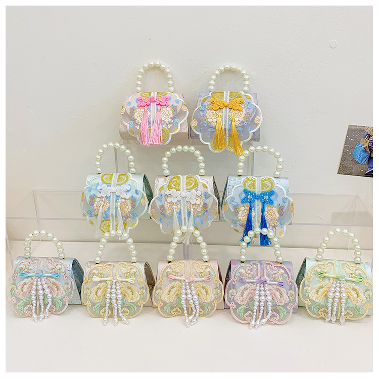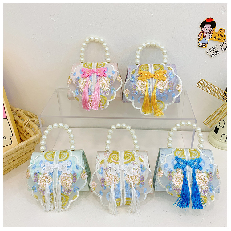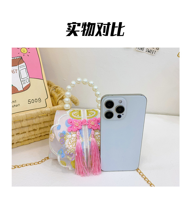 고풍스러운 자수 소녀 숄더백 신상 진주 장식 어린이 핸드백 외출용 체인 아기 크로스백스토어 가기