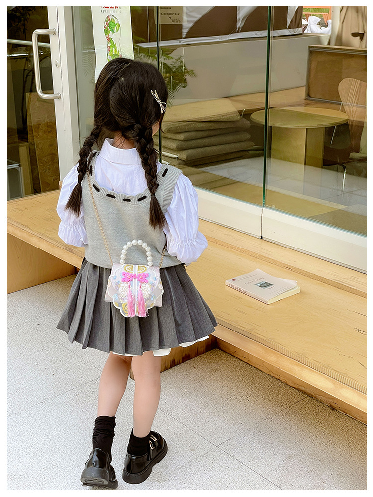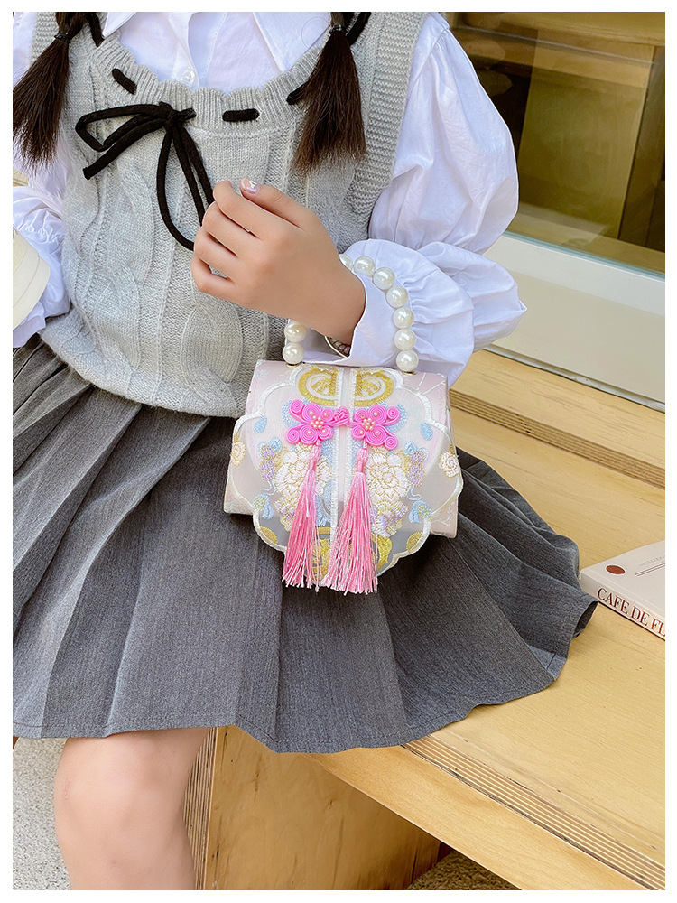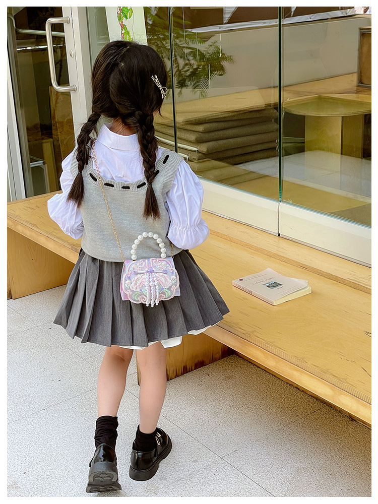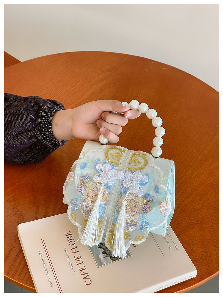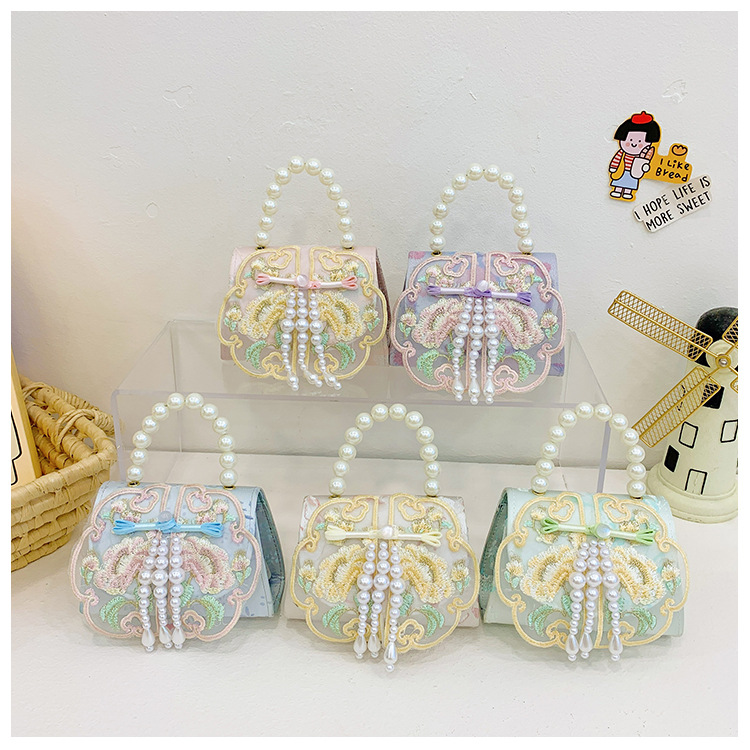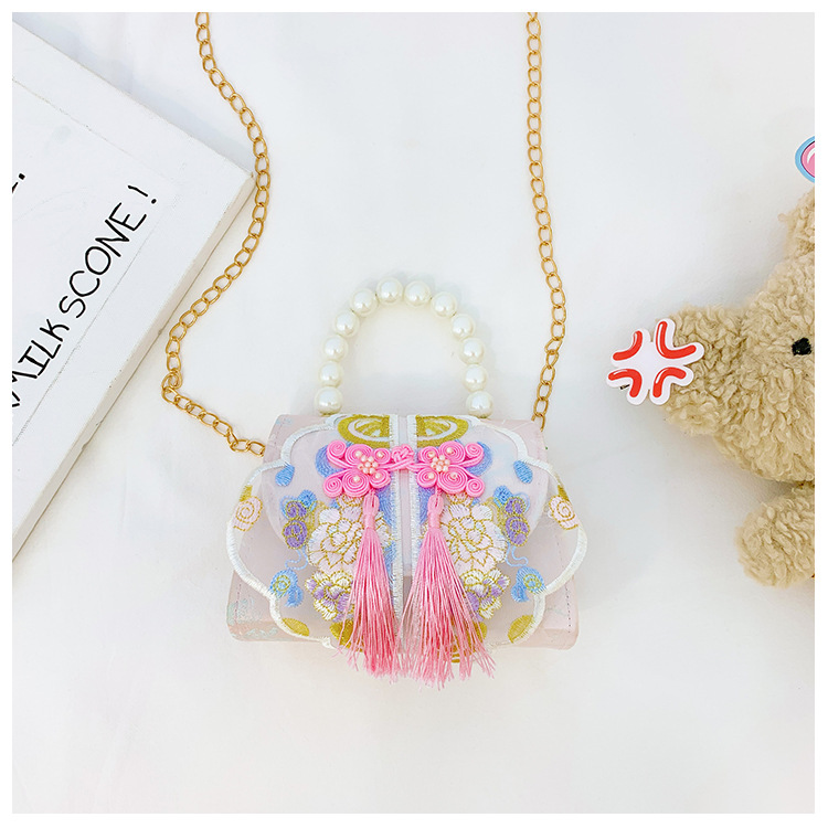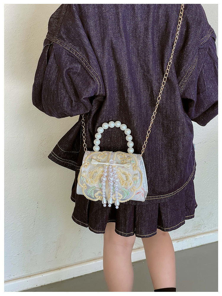 고풍스러운 자수 소녀 숄더백 신상 진주 장식 어린이 핸드백 외출용 체인 아기 크로스백