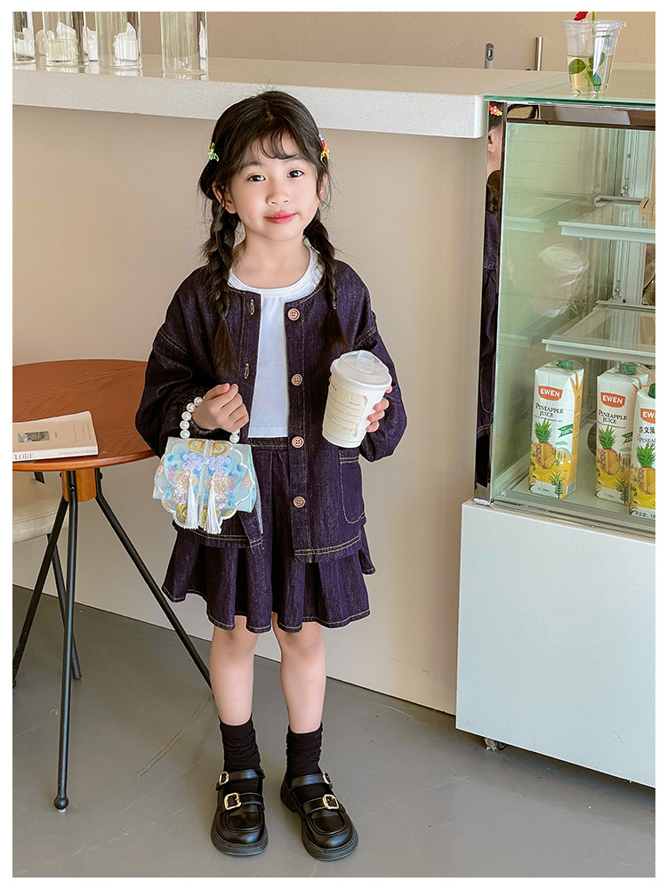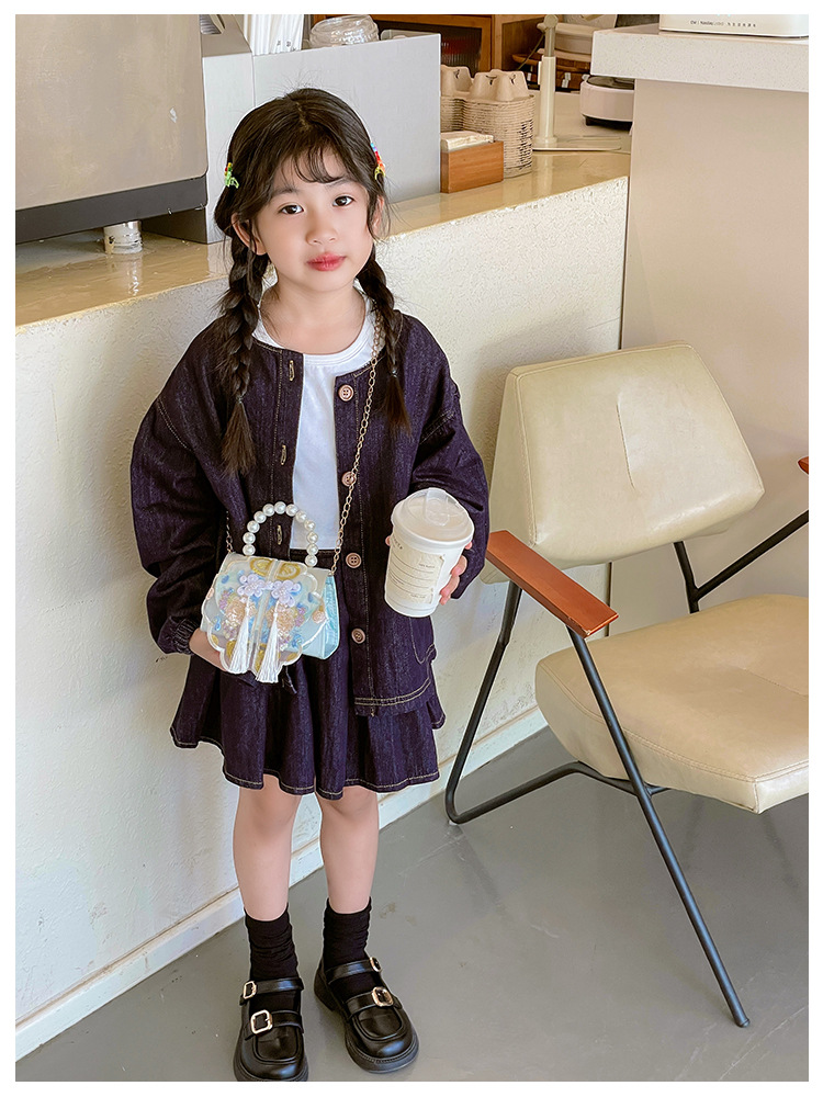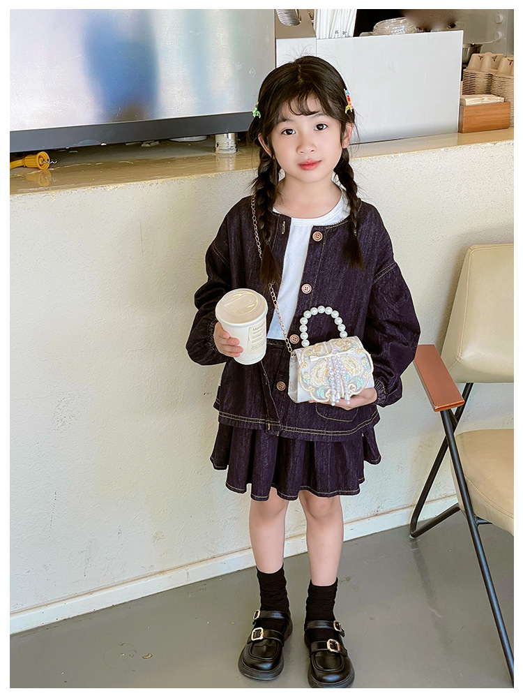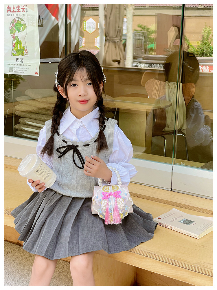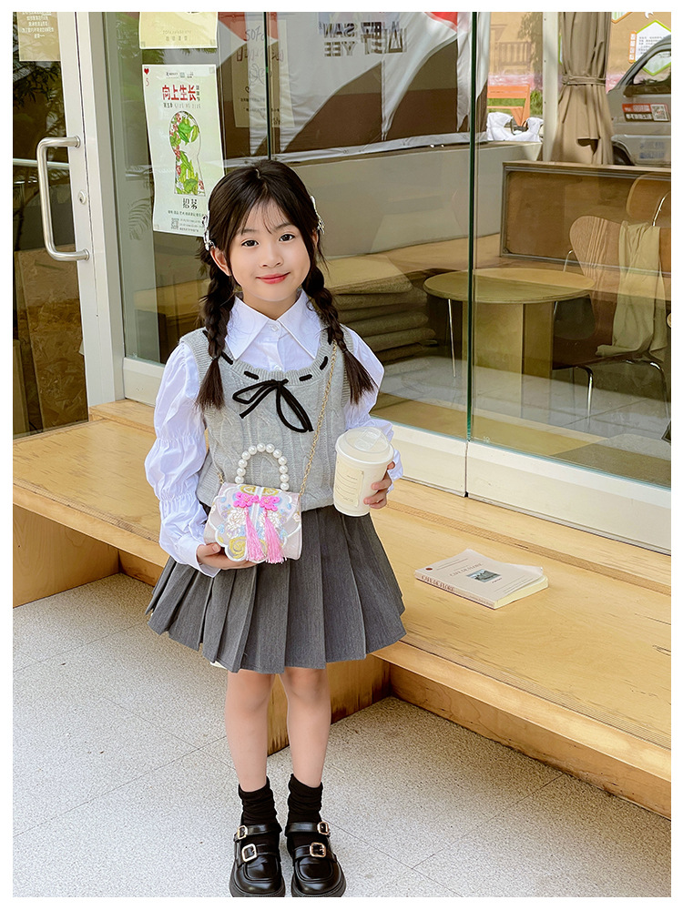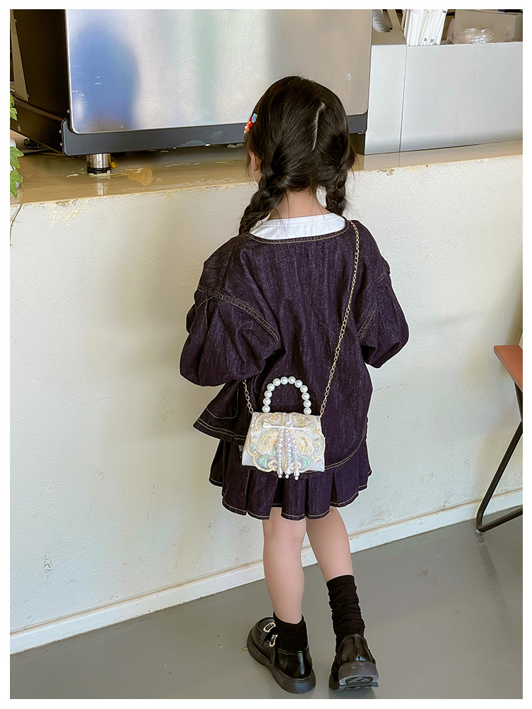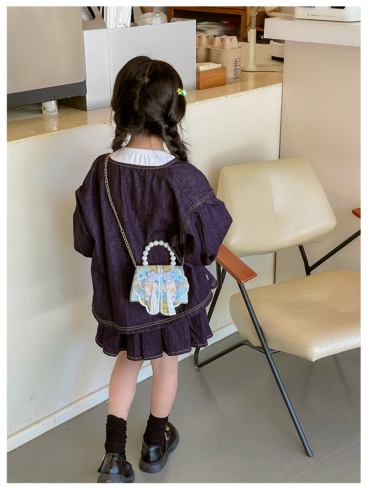고풍스러운 자수 소녀 숄더백 신상 진주 장식 어린이 핸드백 외출용 체인 아기 크로스백
