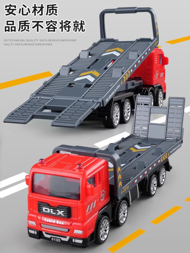 드 리신 어린이 구조 트레일러 시뮬레이션 플랫 베드 트랜스포터 자동차 아기 퍼즐 모델 소년 장난감 자동차