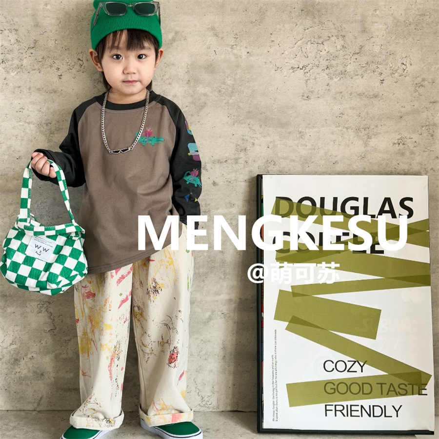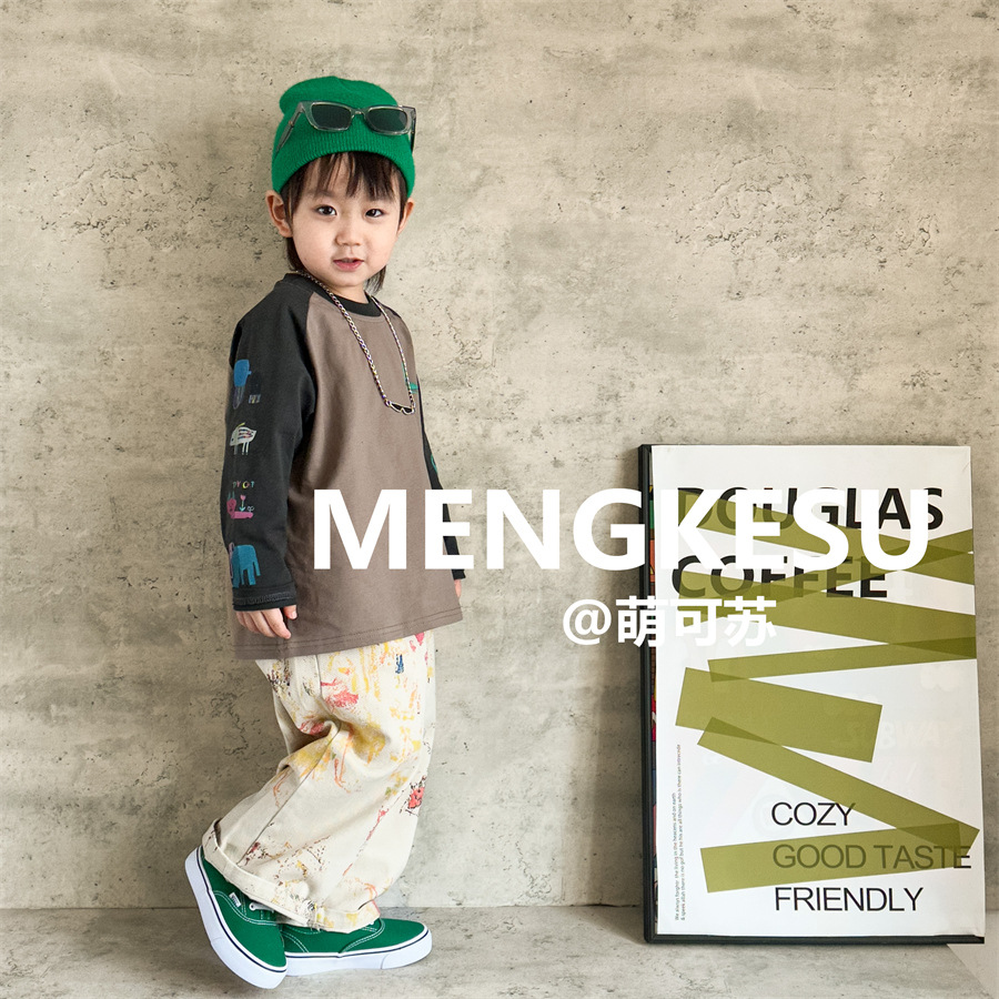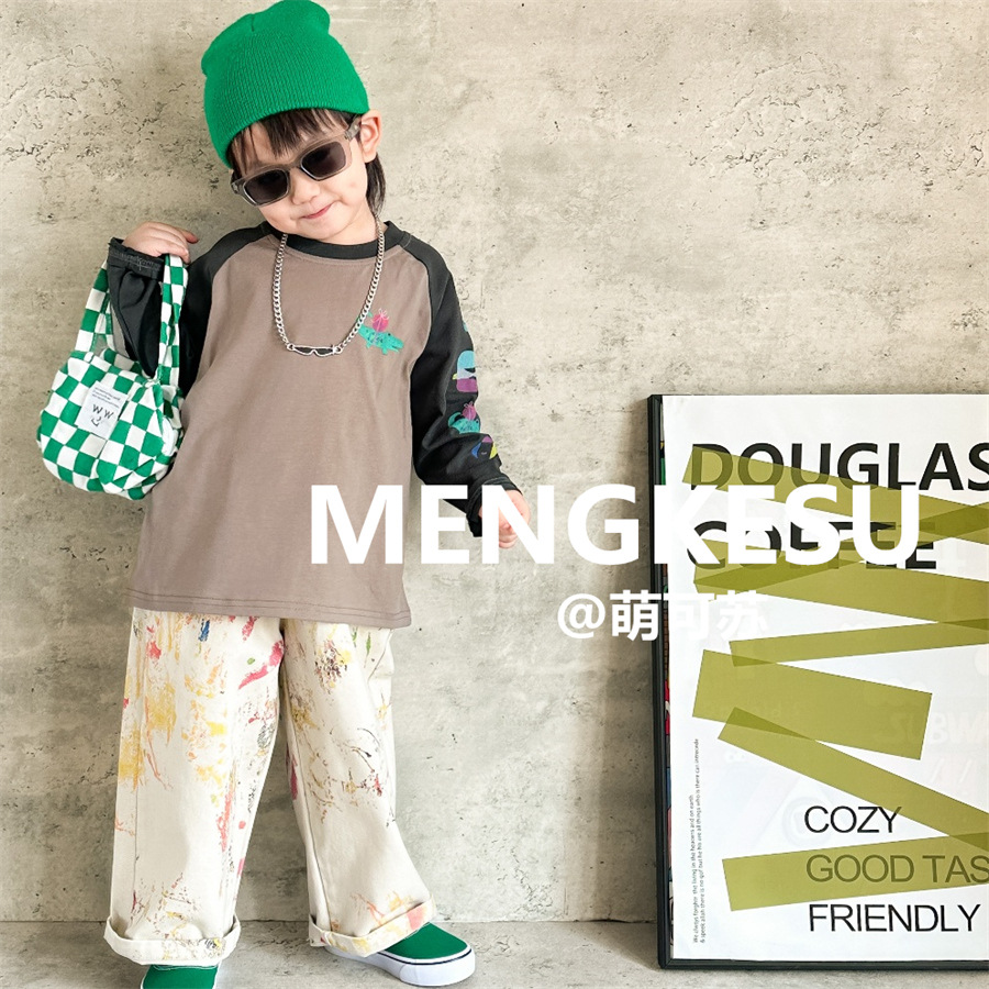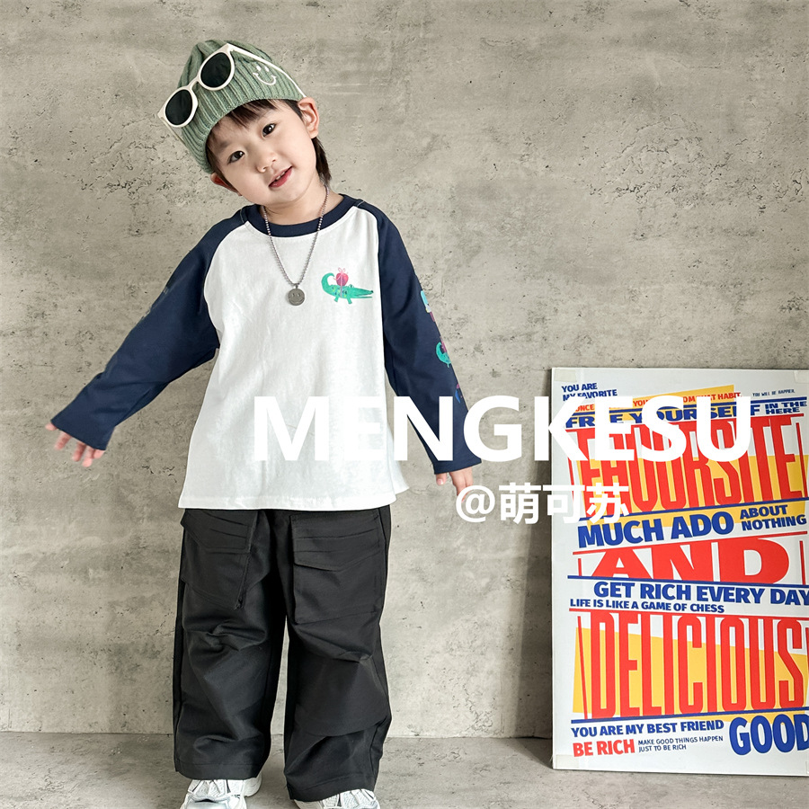 멍수 아동복 어린이 티셔츠 긴팔 2025 신상 아기 다용도 배색 상의 남아 봄 가을 이너웨어 트렌디 티셔츠