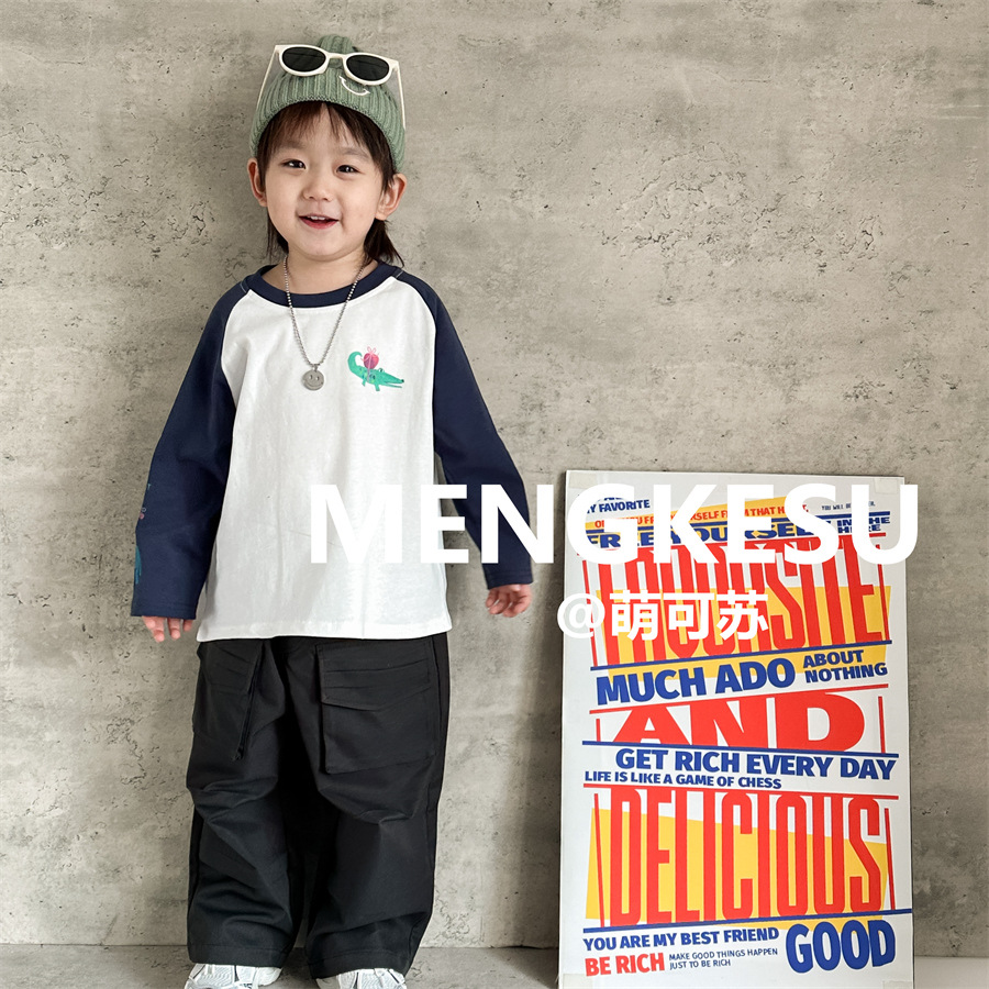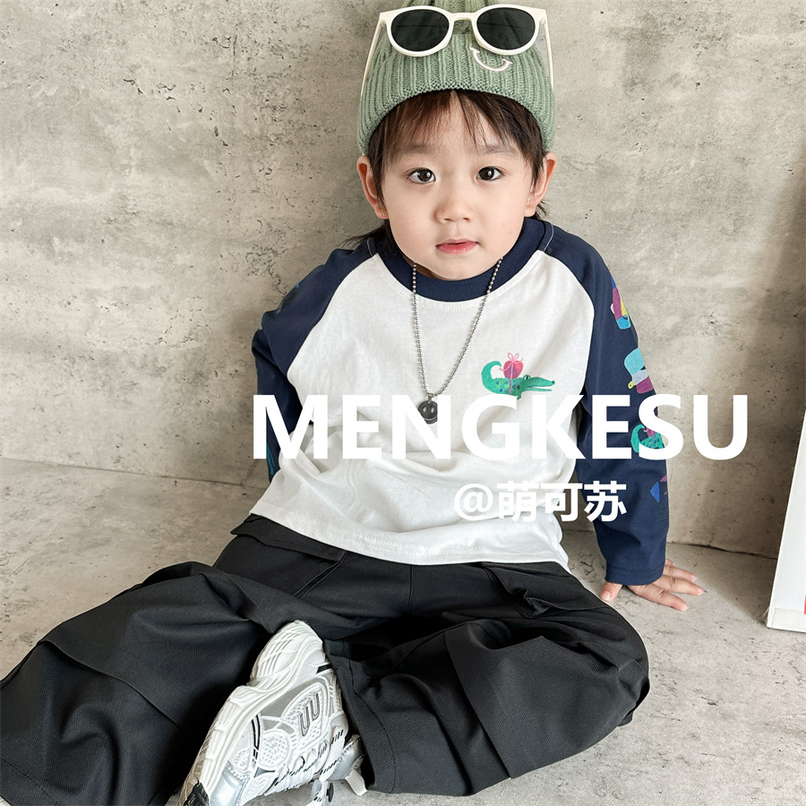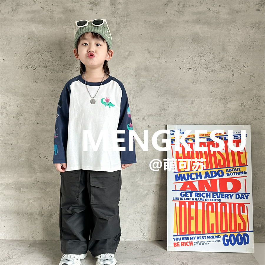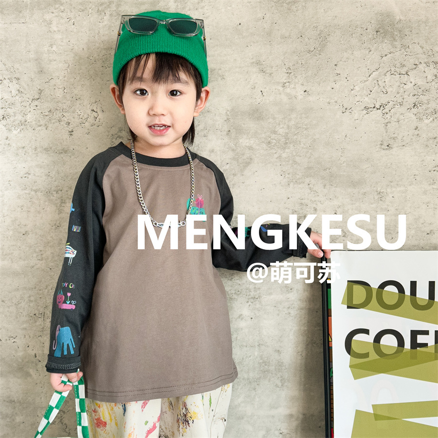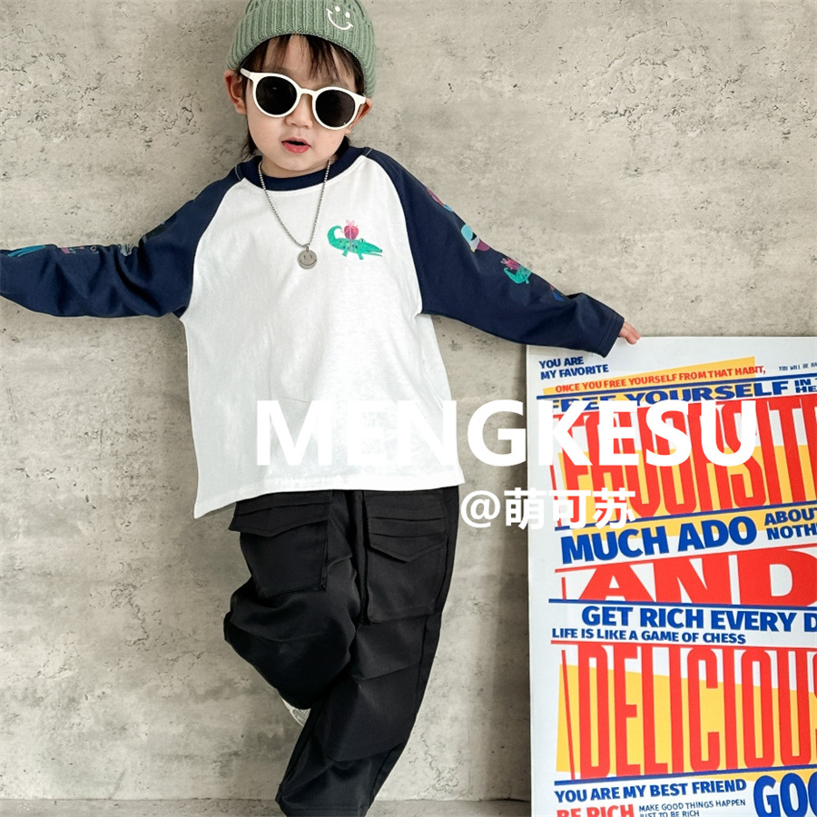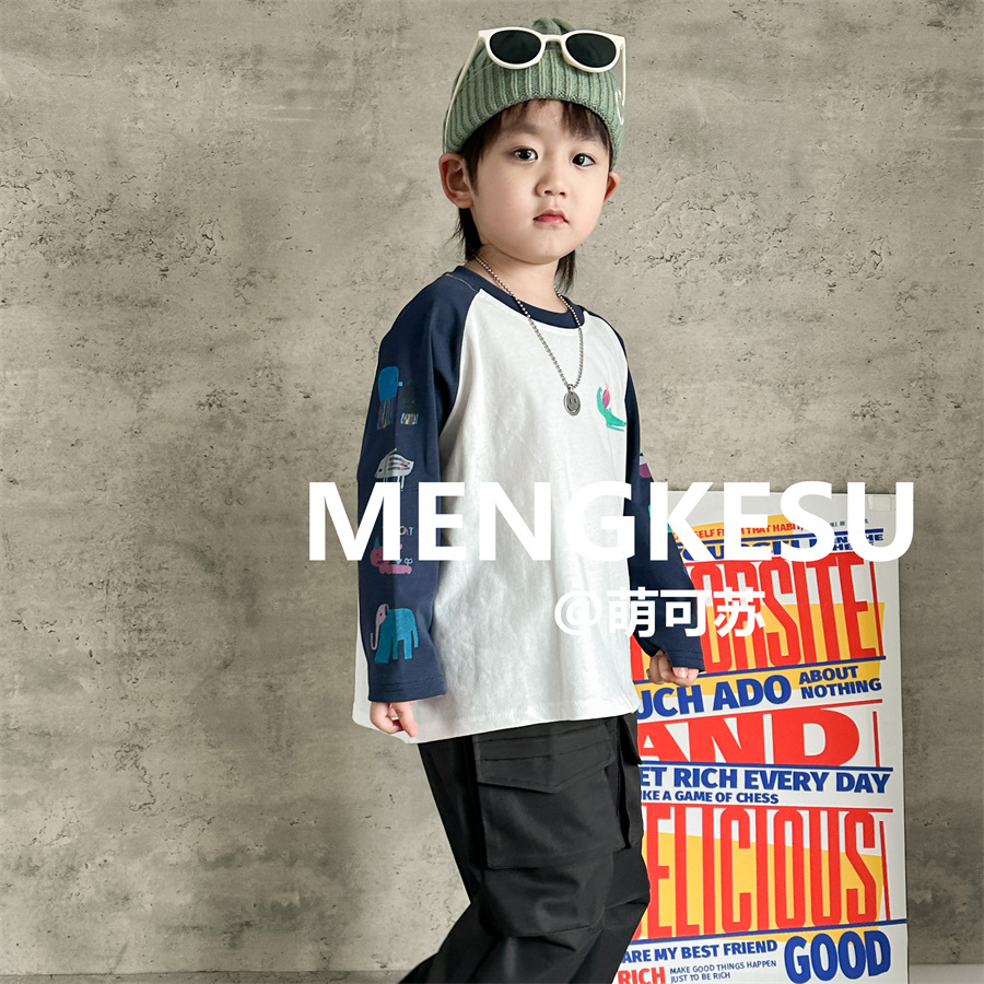 멍수 아동복 어린이 티셔츠 긴팔 2025 신상 아기 다용도 배색 상의 남아 봄 가을 이너웨어 트렌디 티셔츠스토어 가기