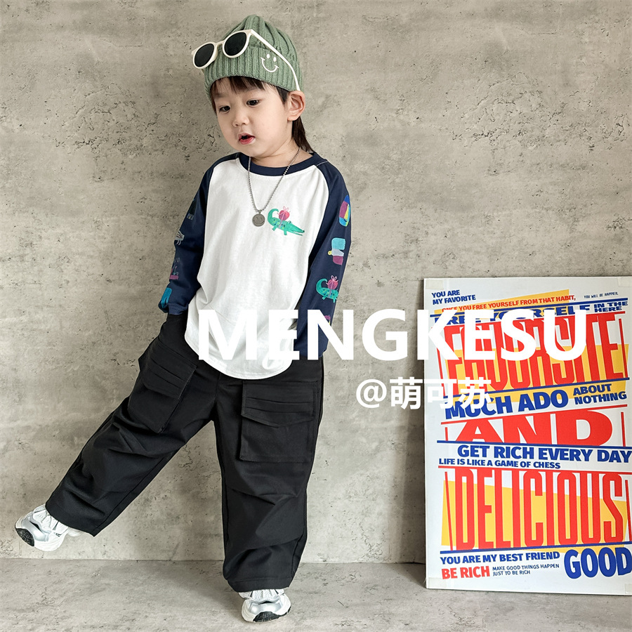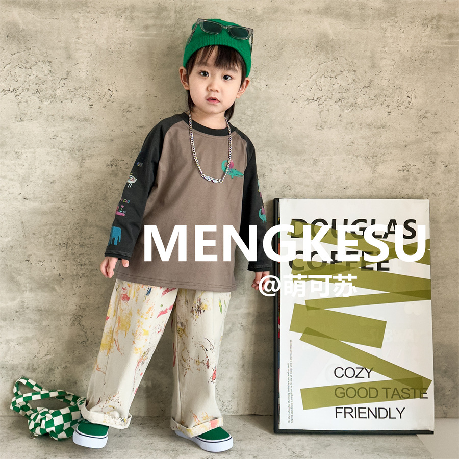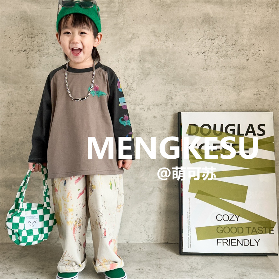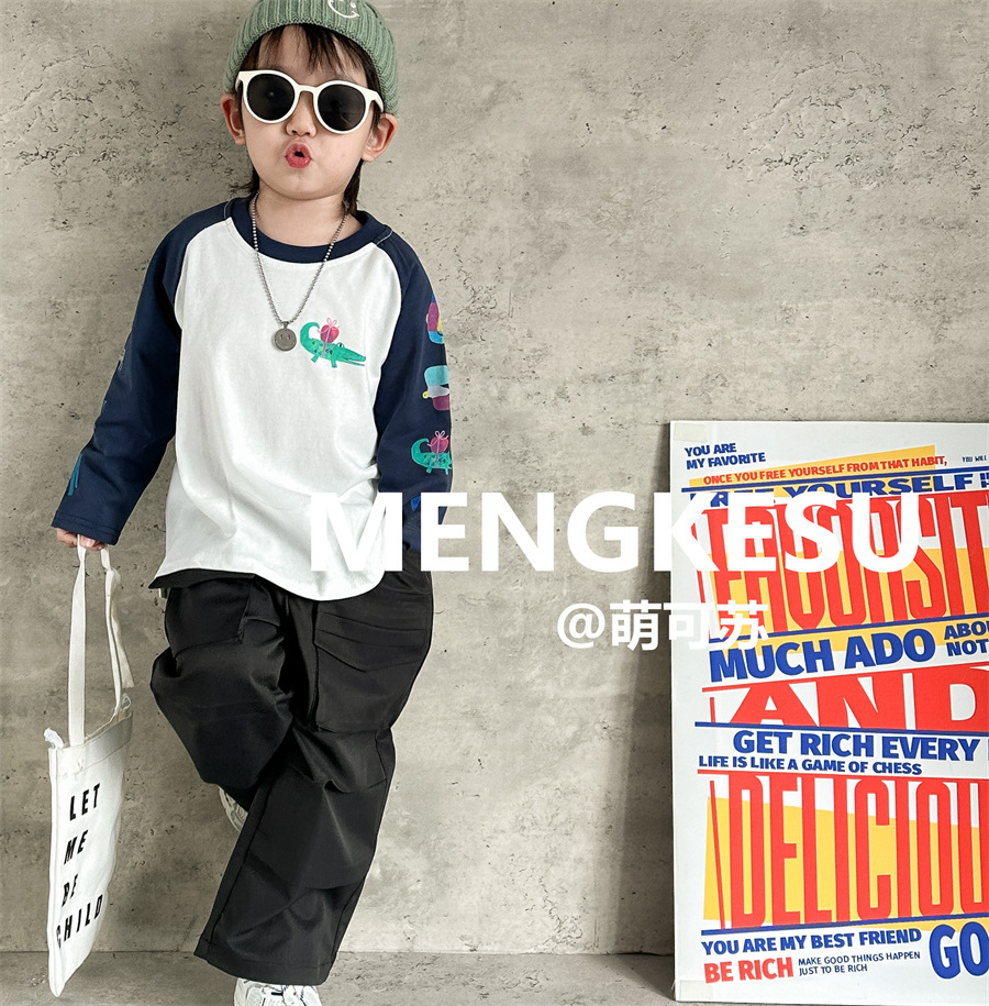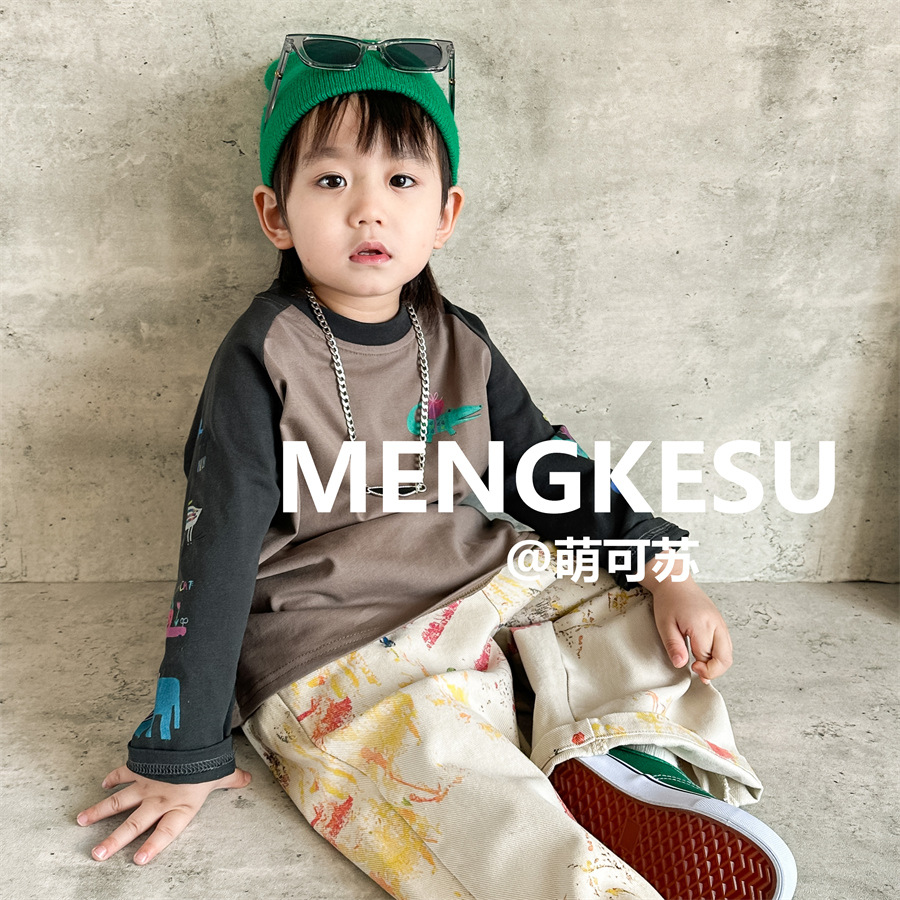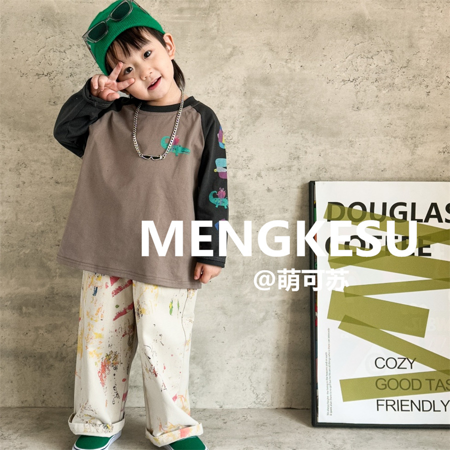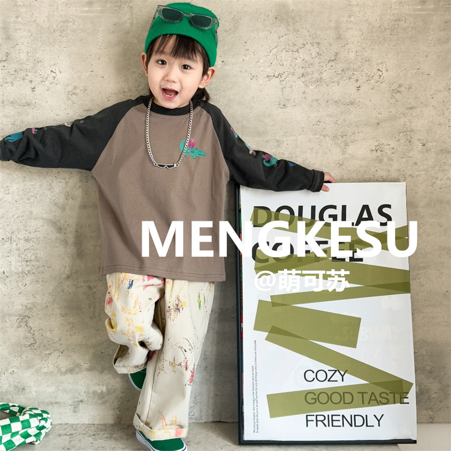 멍수 아동복 어린이 티셔츠 긴팔 2025 신상 아기 다용도 배색 상의 남아 봄 가을 이너웨어 트렌디 티셔츠스토어 가기