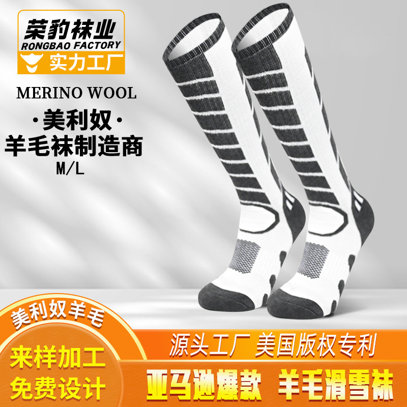 국경 간 메리노 울 스키 양말 두꺼운 수건 바닥 남성과 여성 야외 겨울 하이 튜브 하이킹 양말 미끄럼 방지 및 따뜻함