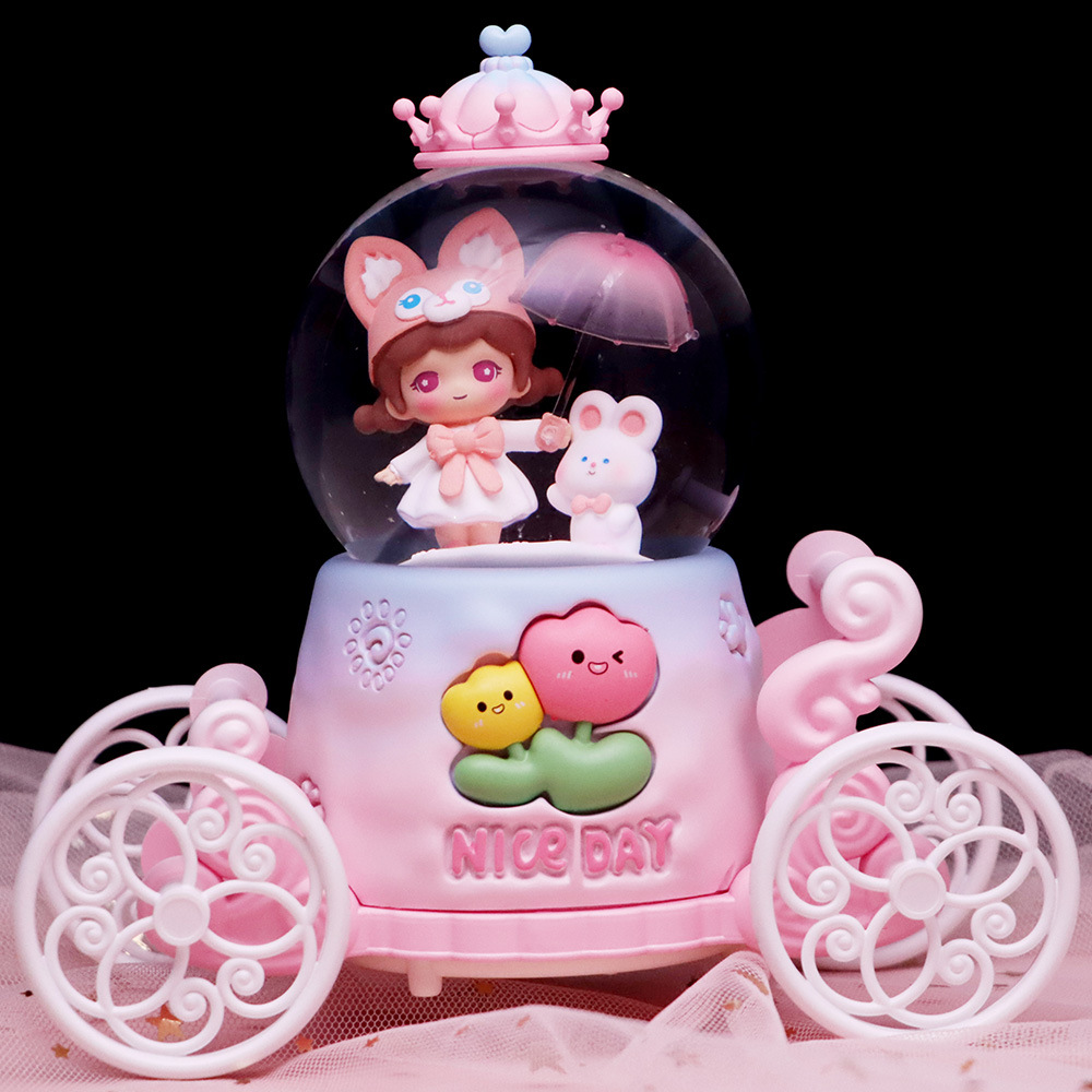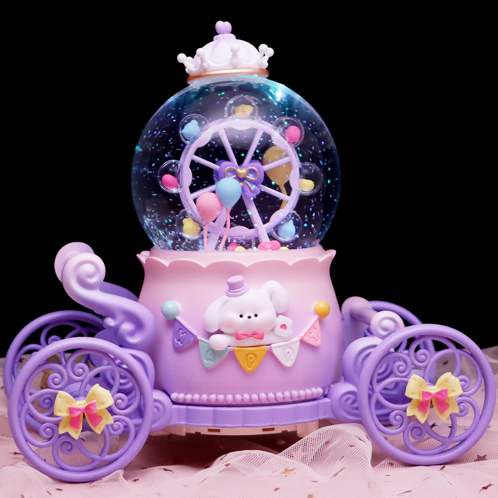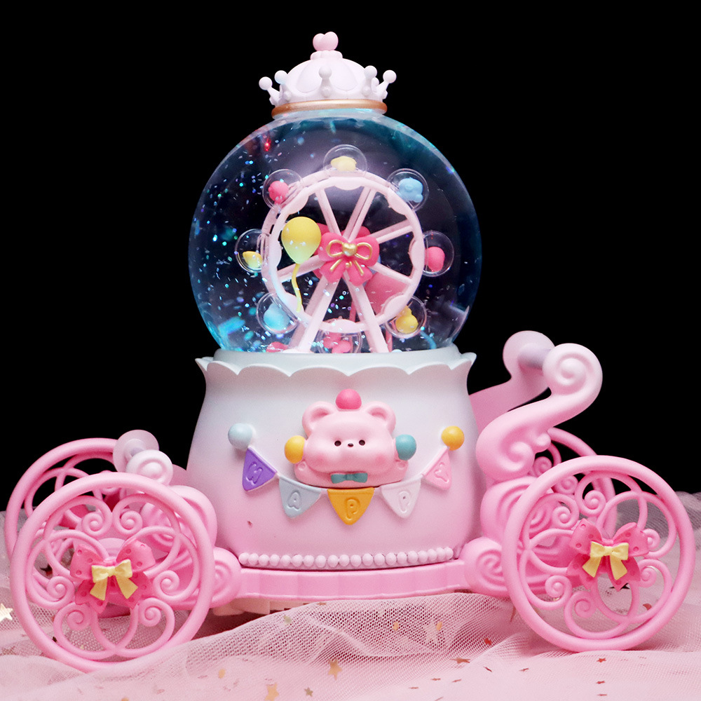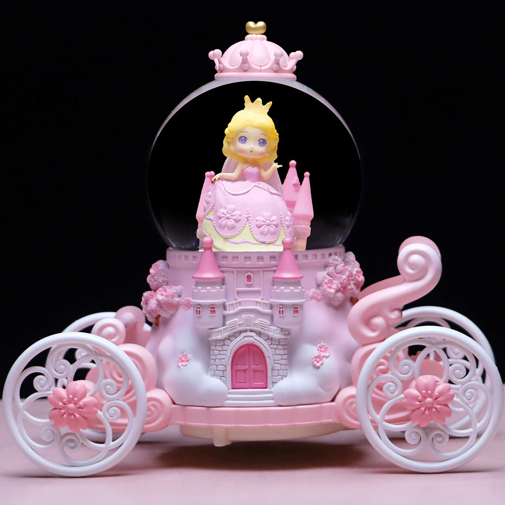 창조적 인 Culomi 호박 마차 크리스탈 볼 뮤직 박스 수지 데스크탑 침실 장식품 소년 소녀를위한 작은 선물
