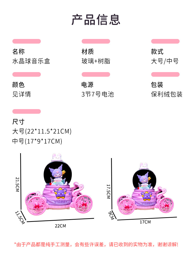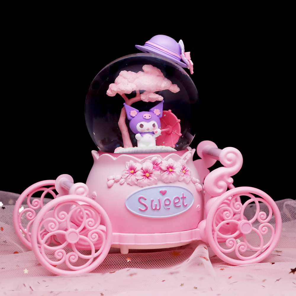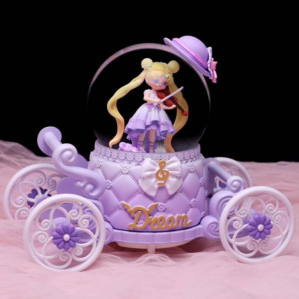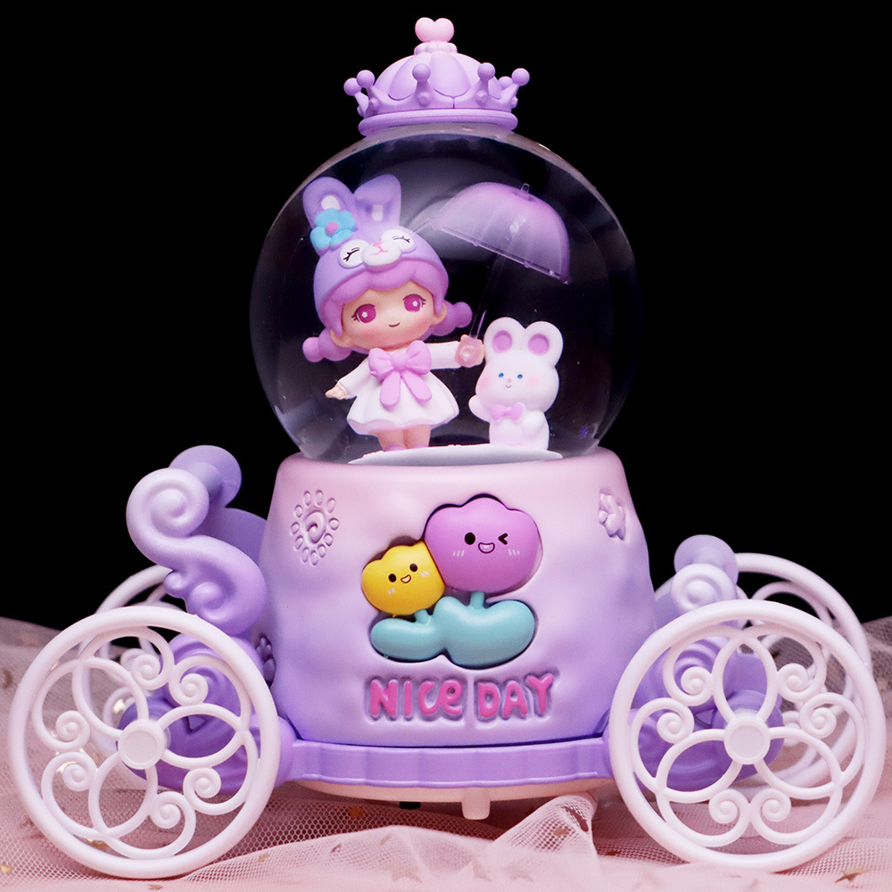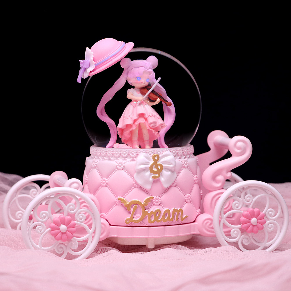창조적 인 Culomi 호박 마차 크리스탈 볼 뮤직 박스 수지 데스크탑 침실 장식품 소년 소녀를위한 작은 선물