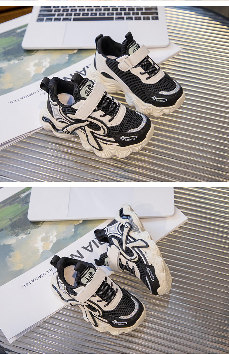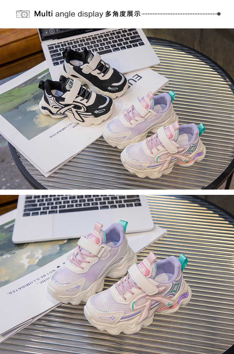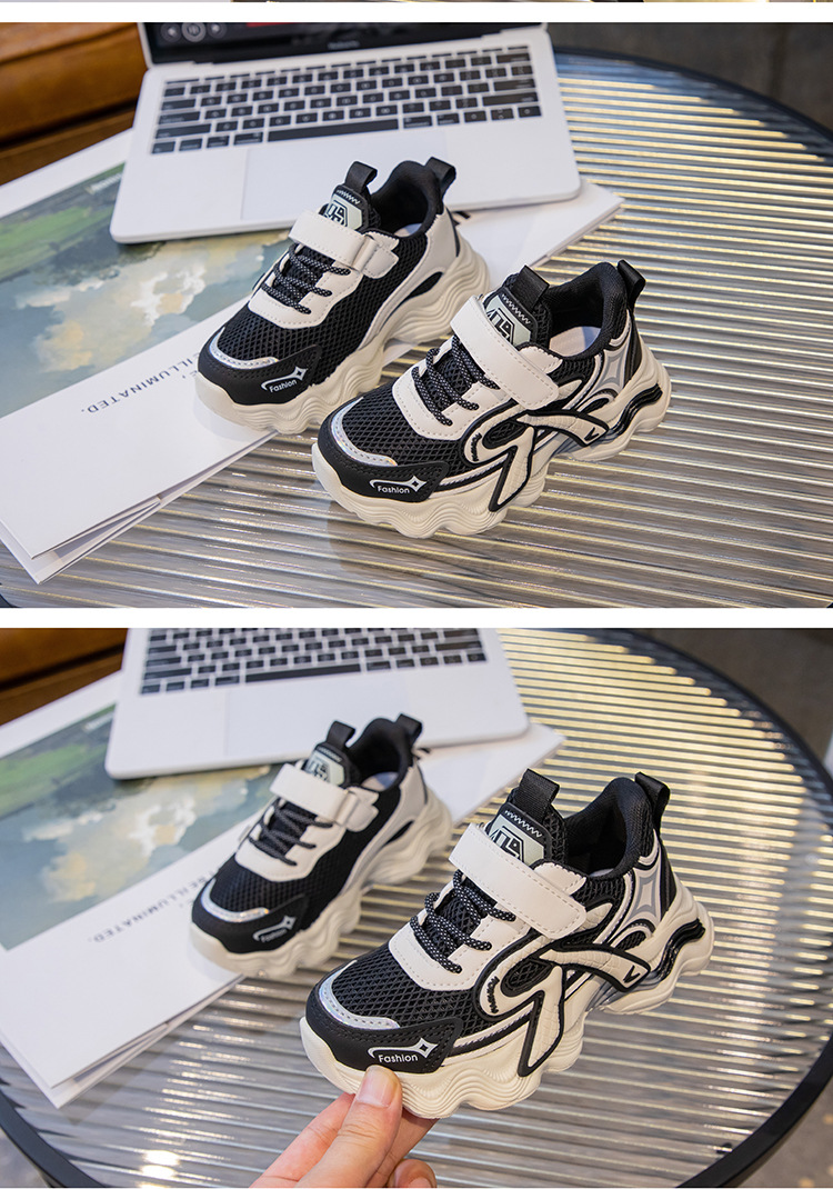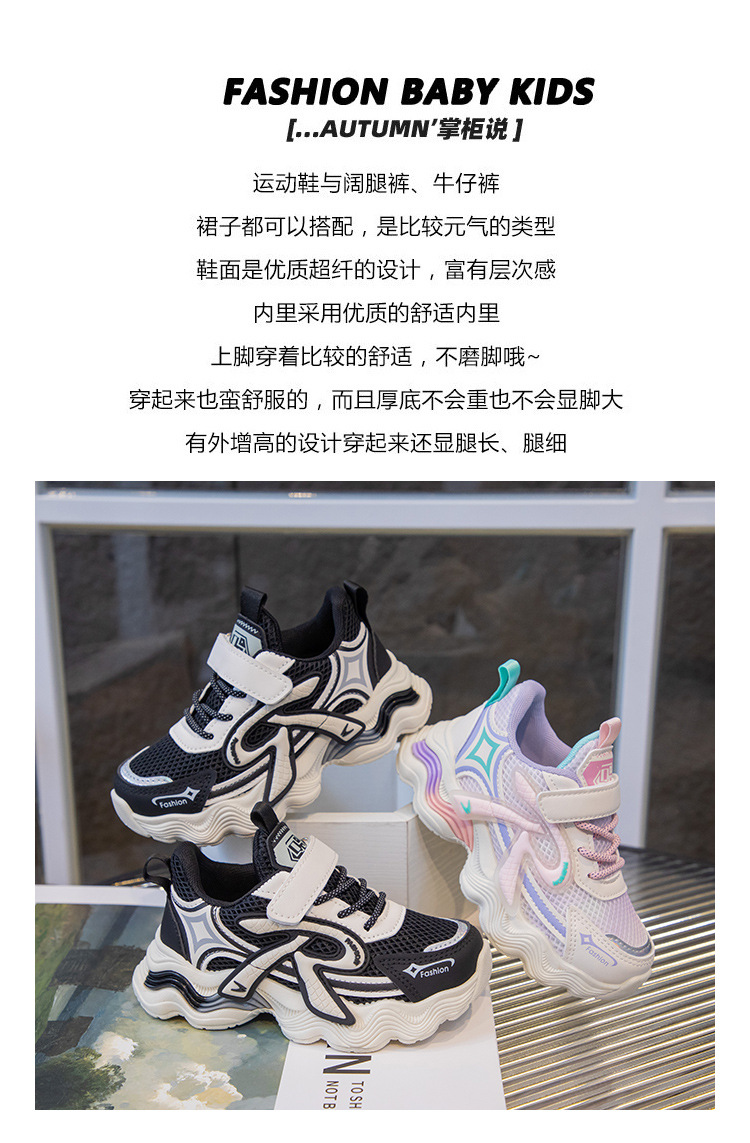 어린이 2025 가을 신상 운동화 두꺼운 밑창 벨크로 스타일 아빠 신발 메쉬 통기성 캐주얼 신발스토어 가기
